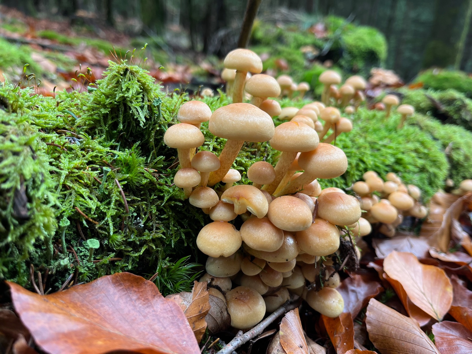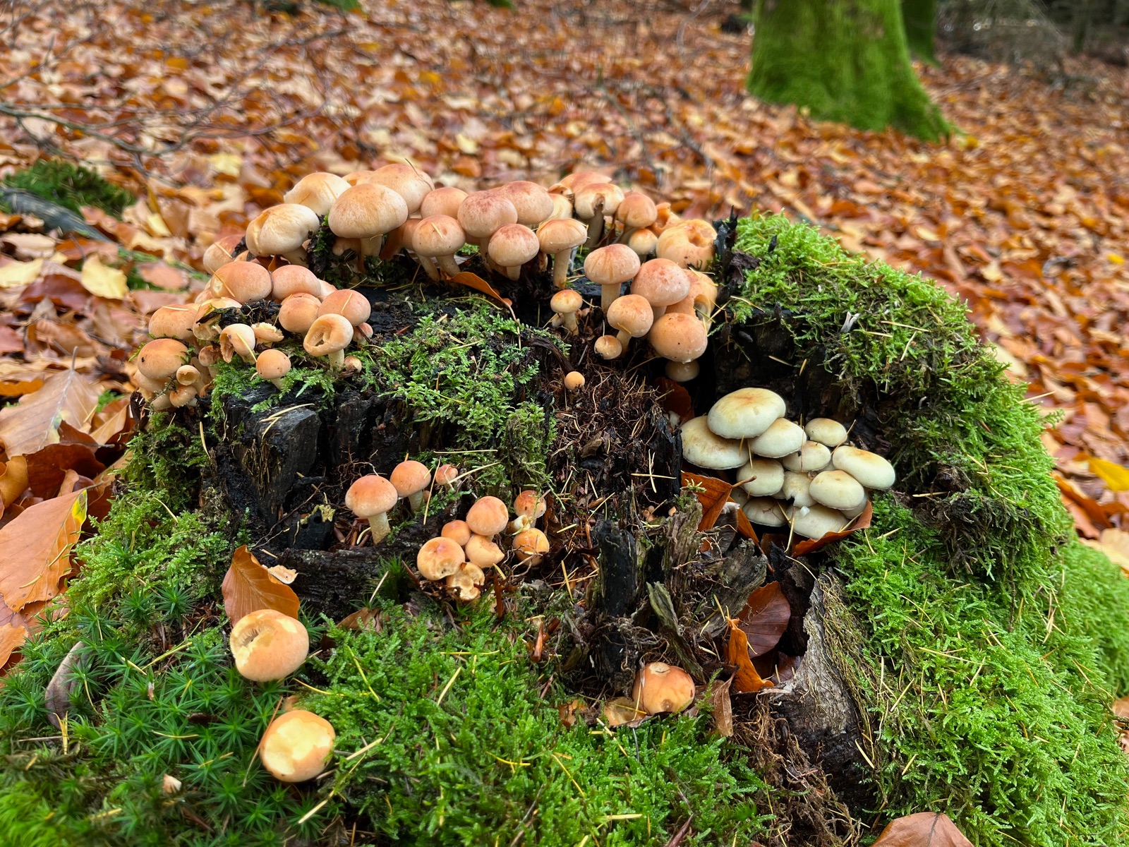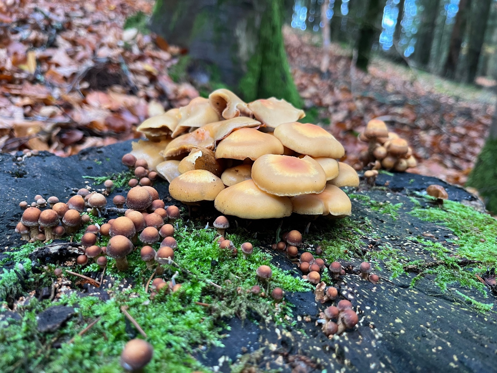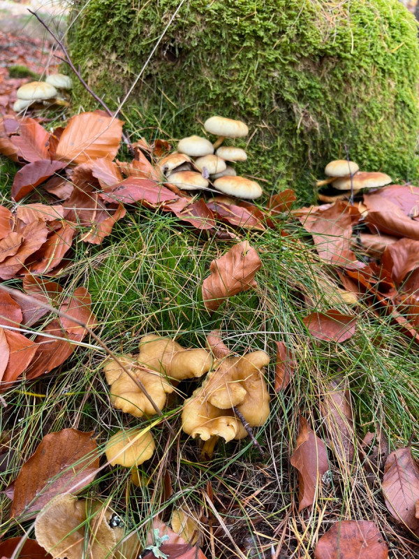 5. Schon wieder Grünblättrige Schwefelköpfe dachte ich. Aber auch Trompetenpfifferlinge schoben sich auch ins Bild. Eigentlich guckten die überall hervor, wenn man das Laub oder den Waldboden nur lange genug fixierte.