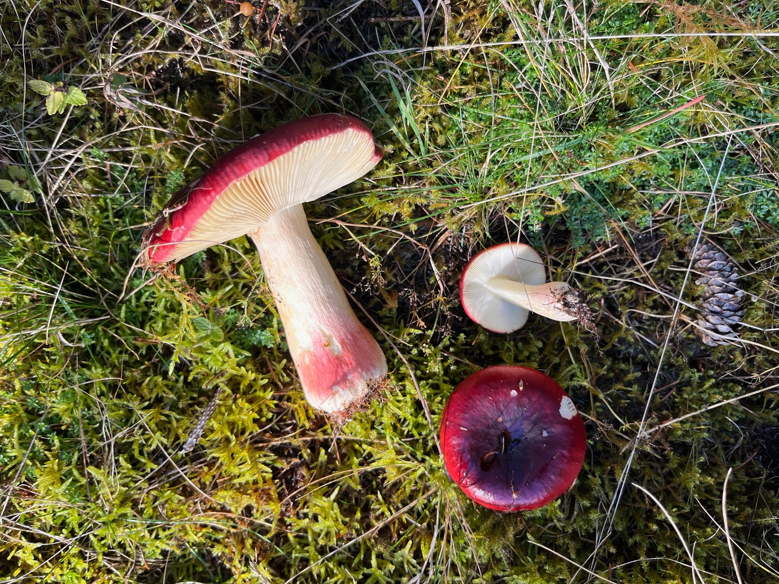4. Rotstielige Heringstäublinge (Russula xerampelina). Sie waren in so guter Verfassung, dass ich mich zu einer Verkostung durchrang. Der fischige Geruch vergeht tatsächlich beim Kochen. Im Mischpilzgericht machen die sich gut, färben das Ganze aber rötlich.