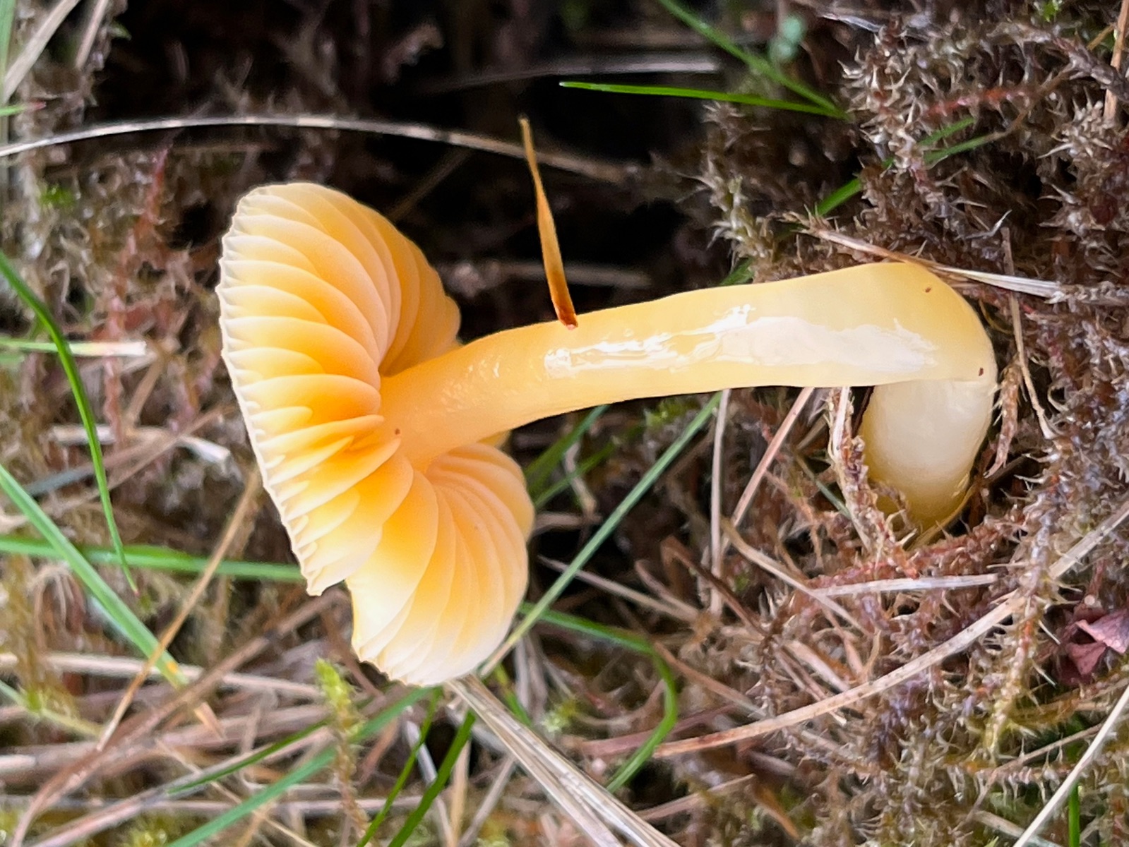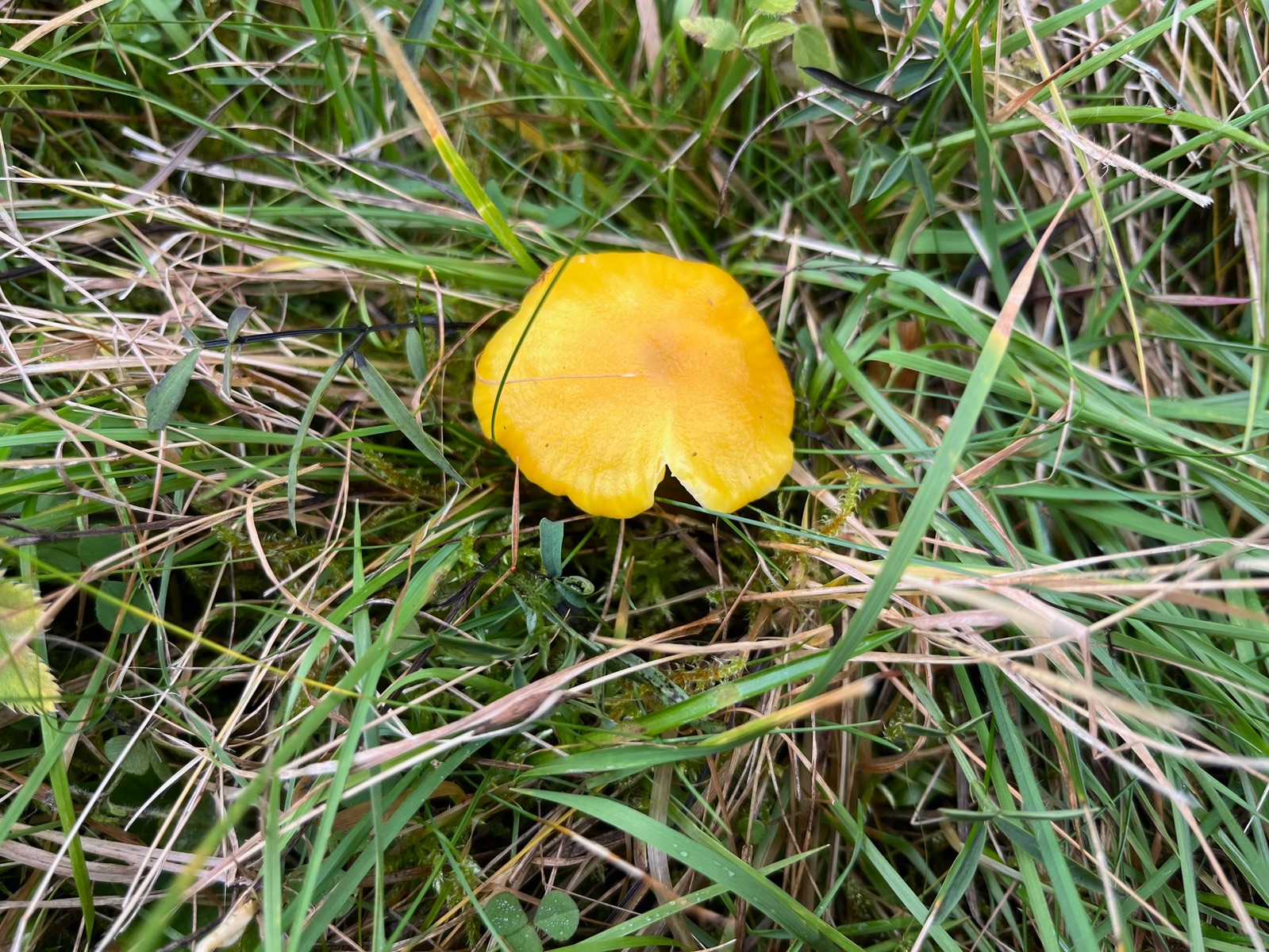12. Die gelben Saftlinge machen sich ein bisschen rar. Hier ein einzelnes, dafür aber 4 cm breites Exemplar vom Stumpfen Saftling - Hygrocybe chorophana.