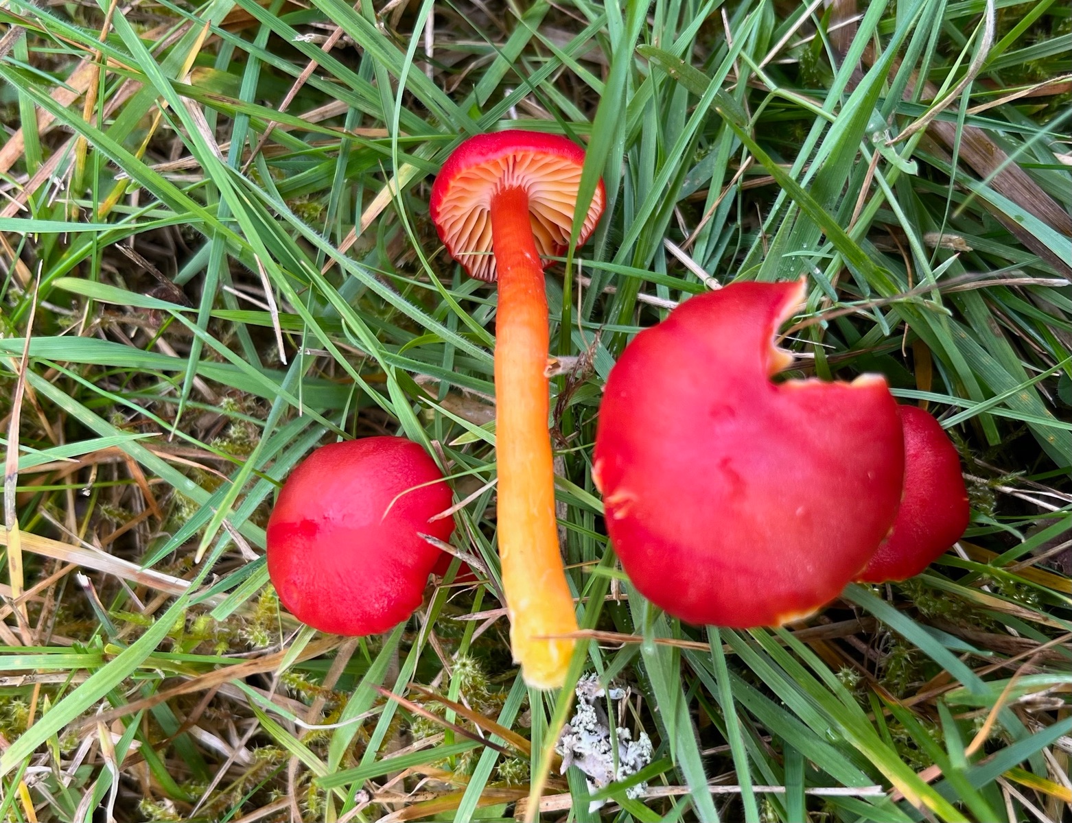 11. So wie Jungfernellerlinge und Schwärzende Saftlinge, die ich nicht fotografiert habe, sind die Kirschroten Saftlinge - Hygrocybe coccinea treue Begleiter fast aller Magerwiesen.