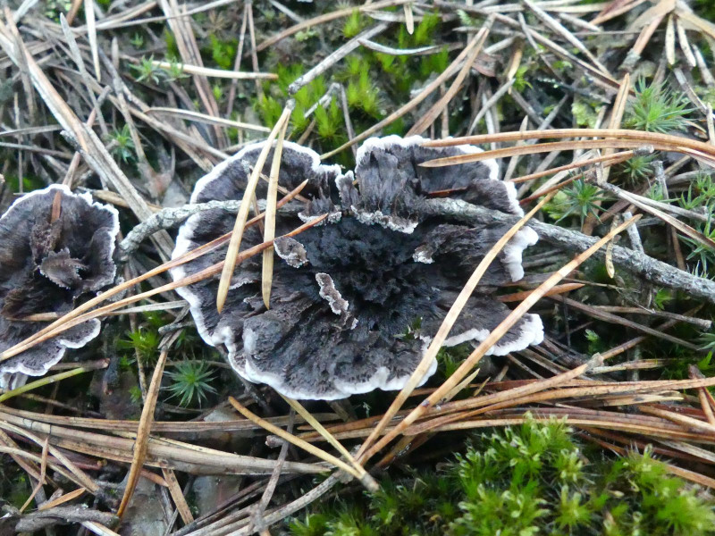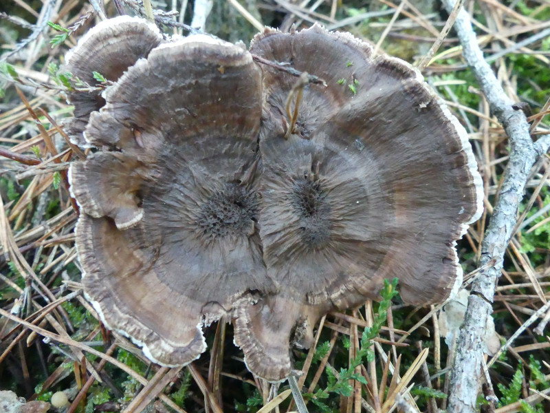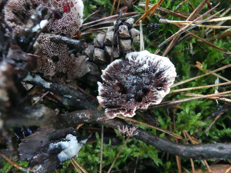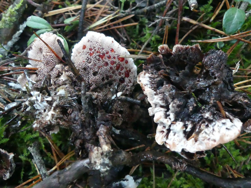 diese Hydnellum habe ich vorgestern im cladonio-pinetum Flechtenkiefernwald auf sehr sandigem Boden gefunden. Frisch sind die relativ geruchlos, eingetrocknet aber mit Maggi-ähnlichem Geruch. Gerade habe ich gegoogelt und festgestellt, dass eine Kostprobe für die Bestimmung hilfreich gewesen wäre. Funktioniert das auch mit bereits herbarisierten Fruchtkörpern? Irgendwie bin ich nicht so scharf drauf, diese Exemplare durchzukauen ...