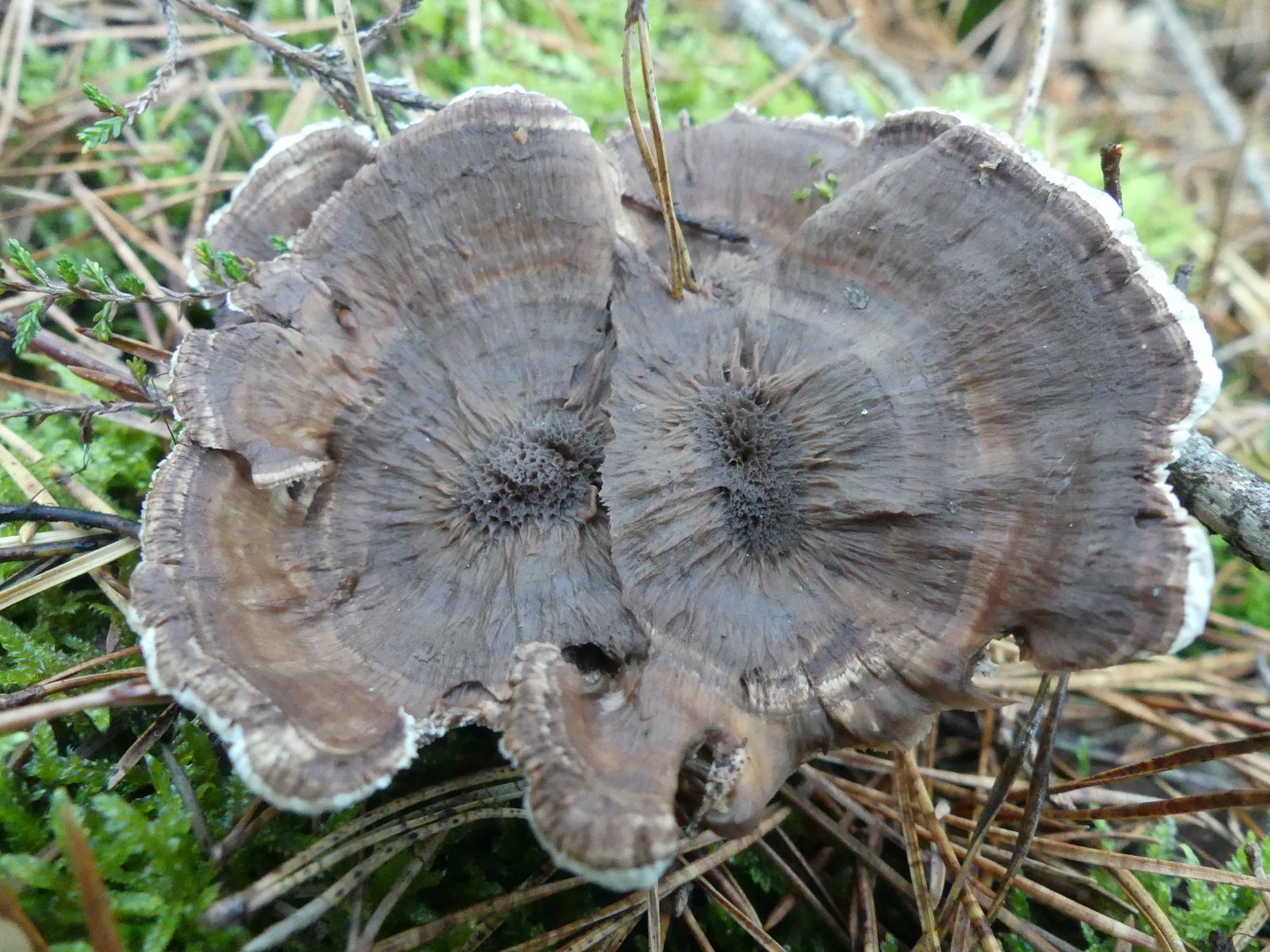 diese Hydnellum habe ich vorgestern im cladonio-pinetum Flechtenkiefernwald auf sehr sandigem Boden gefunden. Frisch sind die relativ geruchlos, eingetrocknet aber mit Maggi-ähnlichem Geruch. Gerade habe ich gegoogelt und festgestellt, dass eine Kostprobe für die Bestimmung hilfreich gewesen wäre. Funktioniert das auch mit bereits herbarisierten Fruchtkörpern? Irgendwie bin ich nicht so scharf drauf, diese Exemplare durchzukauen ...