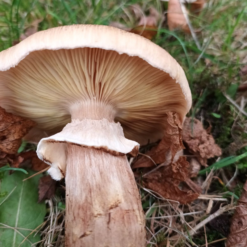 auch diesen Halli habe ich auf dem Friedhof gefunden. Er erfreute sich allerdings bester Gesundheit. Auffallend ist die honiggelber Lamellenfarbe. Man sieht sie auf den Bildern gar nicht richtig. Wie schade.