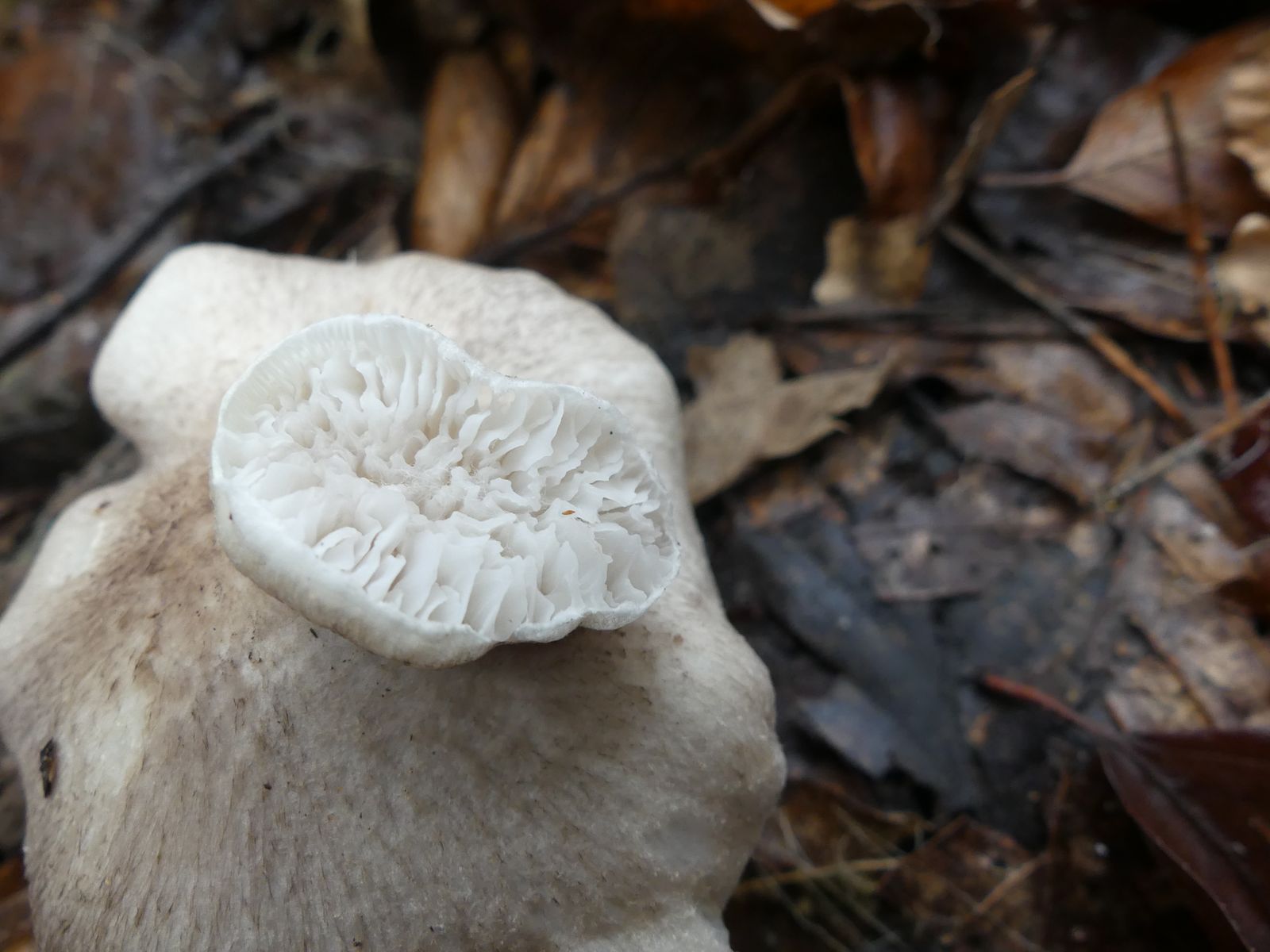 Dieser "Erd-Ritterling" s.l. war mir wegen seiner Fehlentwicklung gleich mehrere Fotos wert. Ja, sowas (und noch viel skurrilere Formen) kommt immer wieder mal vor, interessant anzuschauen finde ich sowas aber trotzdem:
