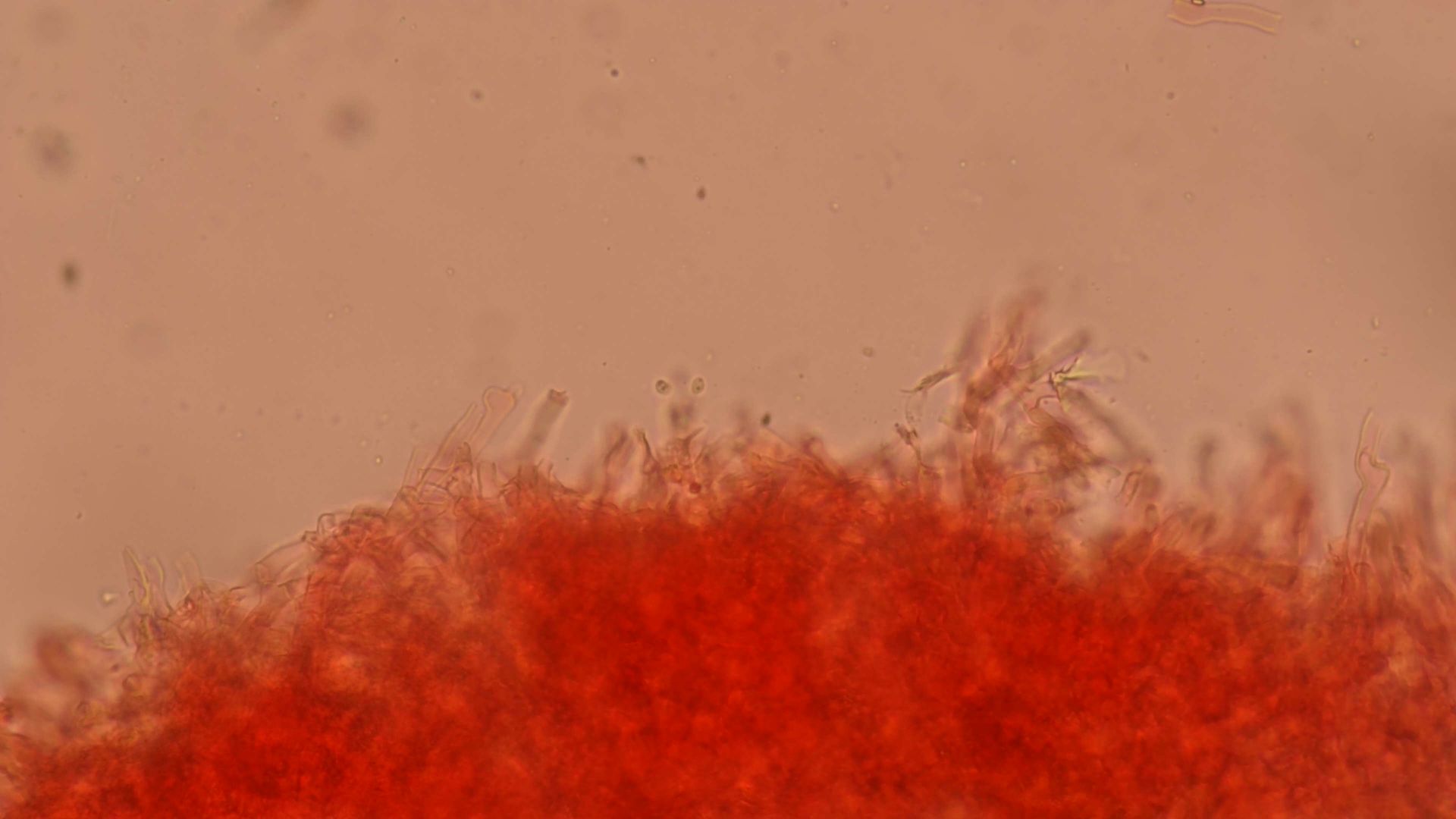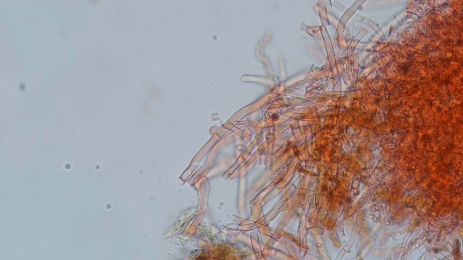 ohne die Art zu kennen: Wenn ich das richtig sehe, soll Phanerochaeta sanguinea keine Schnallen haben und auf dem vorvorletzten Bild (du kannst sie übrigens auch in den Beitrag einfügen und durchnummerieren) sieht man eindeutig eine Schnalle. Das passt nicht so recht, auch wenn ansonsten alles auf den ersten Blick gut aussieht.