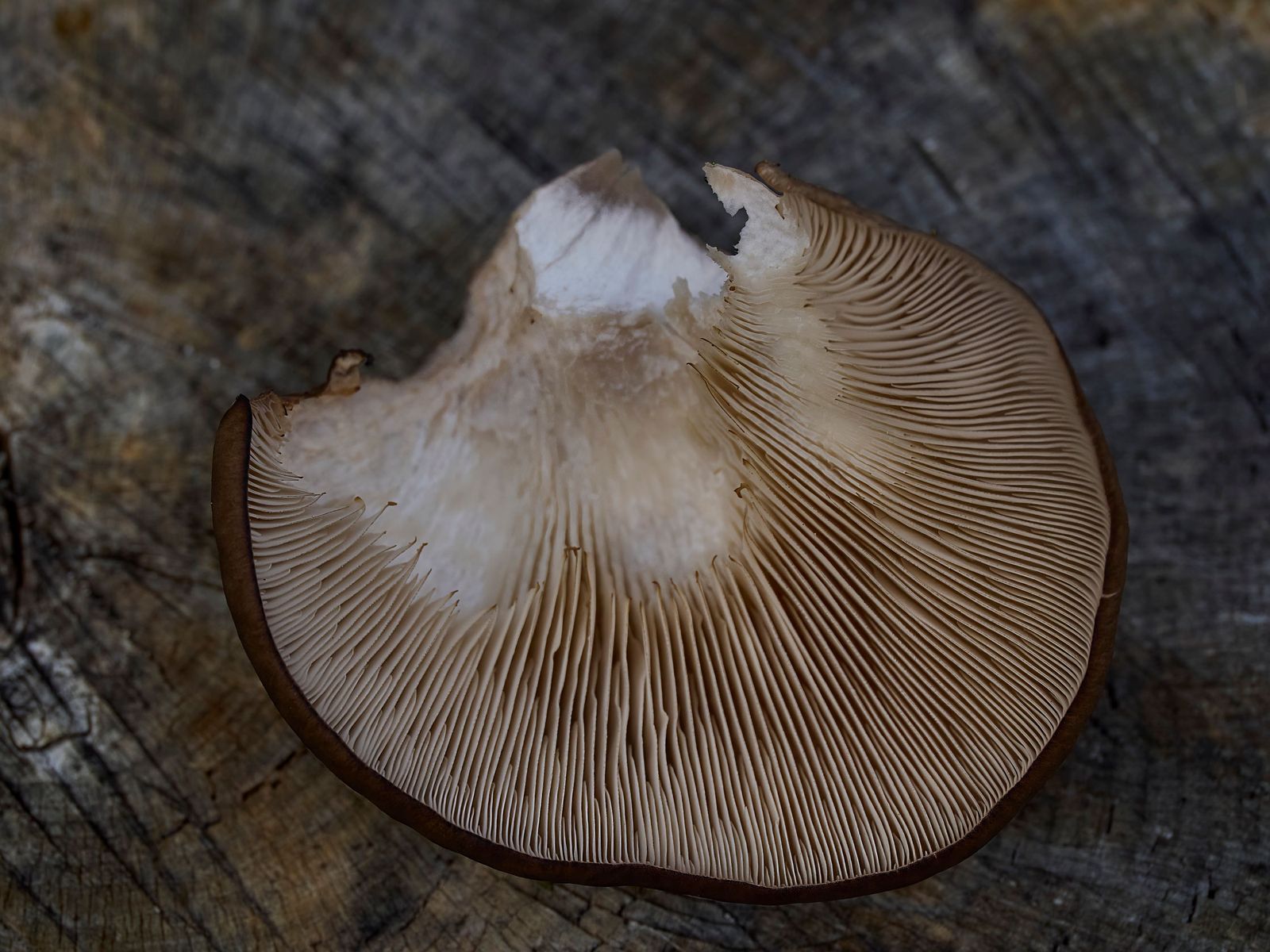 2. November 2025 #1 Vorgestern an einem Buchenstumpf gefunden. Geruch angenehm mild. Durchmesser an Hutrand ca. 10 cm.