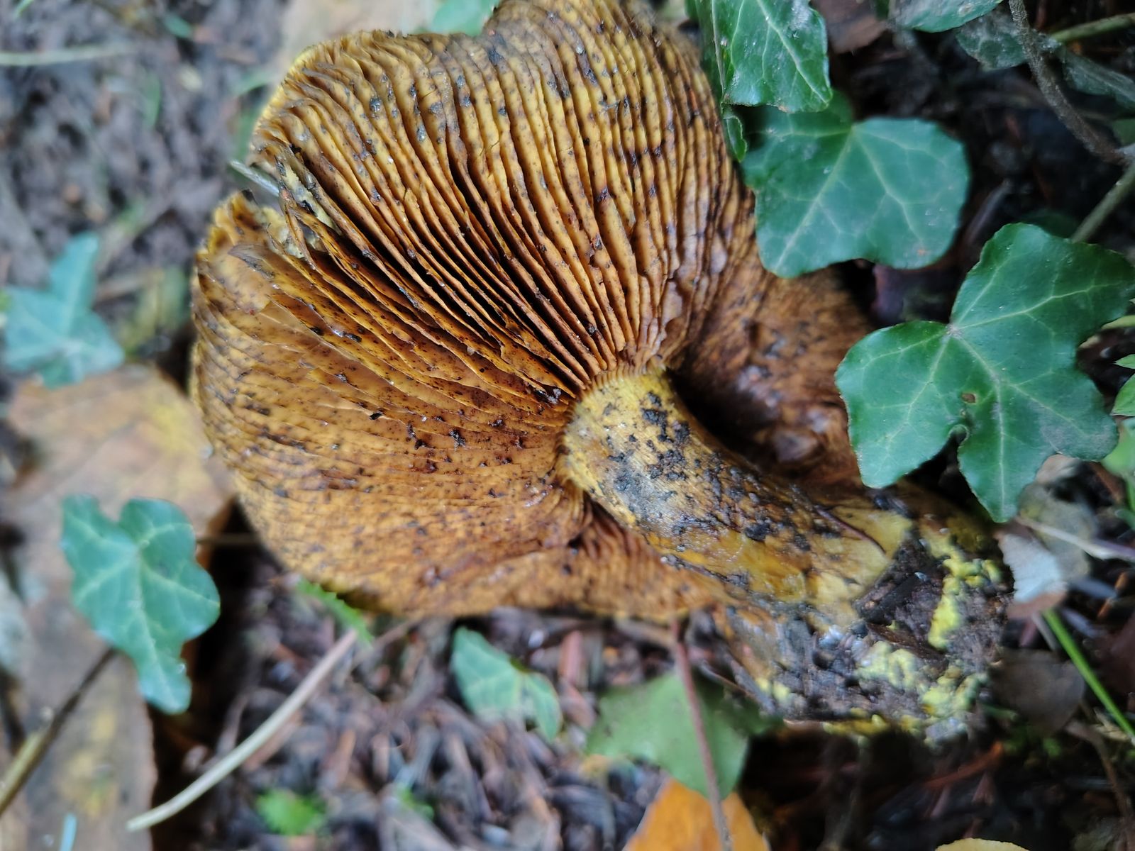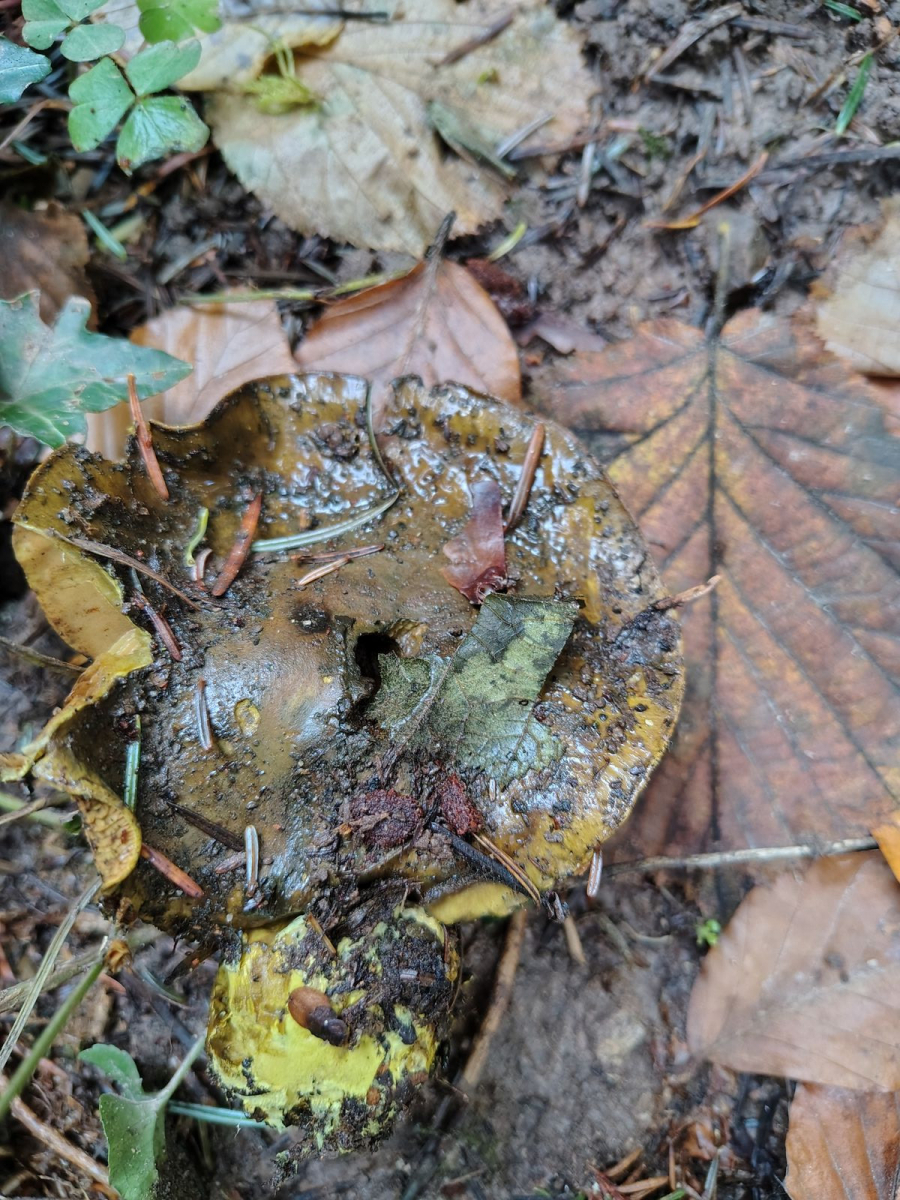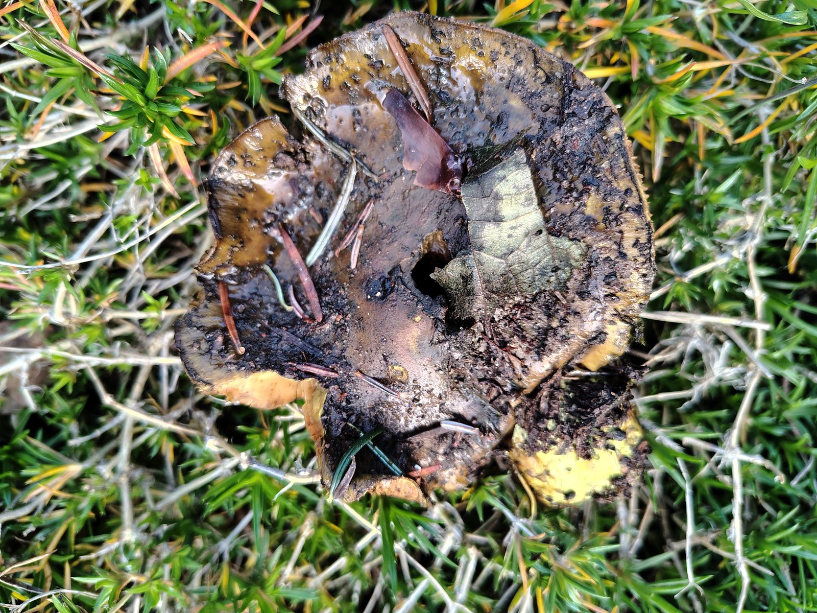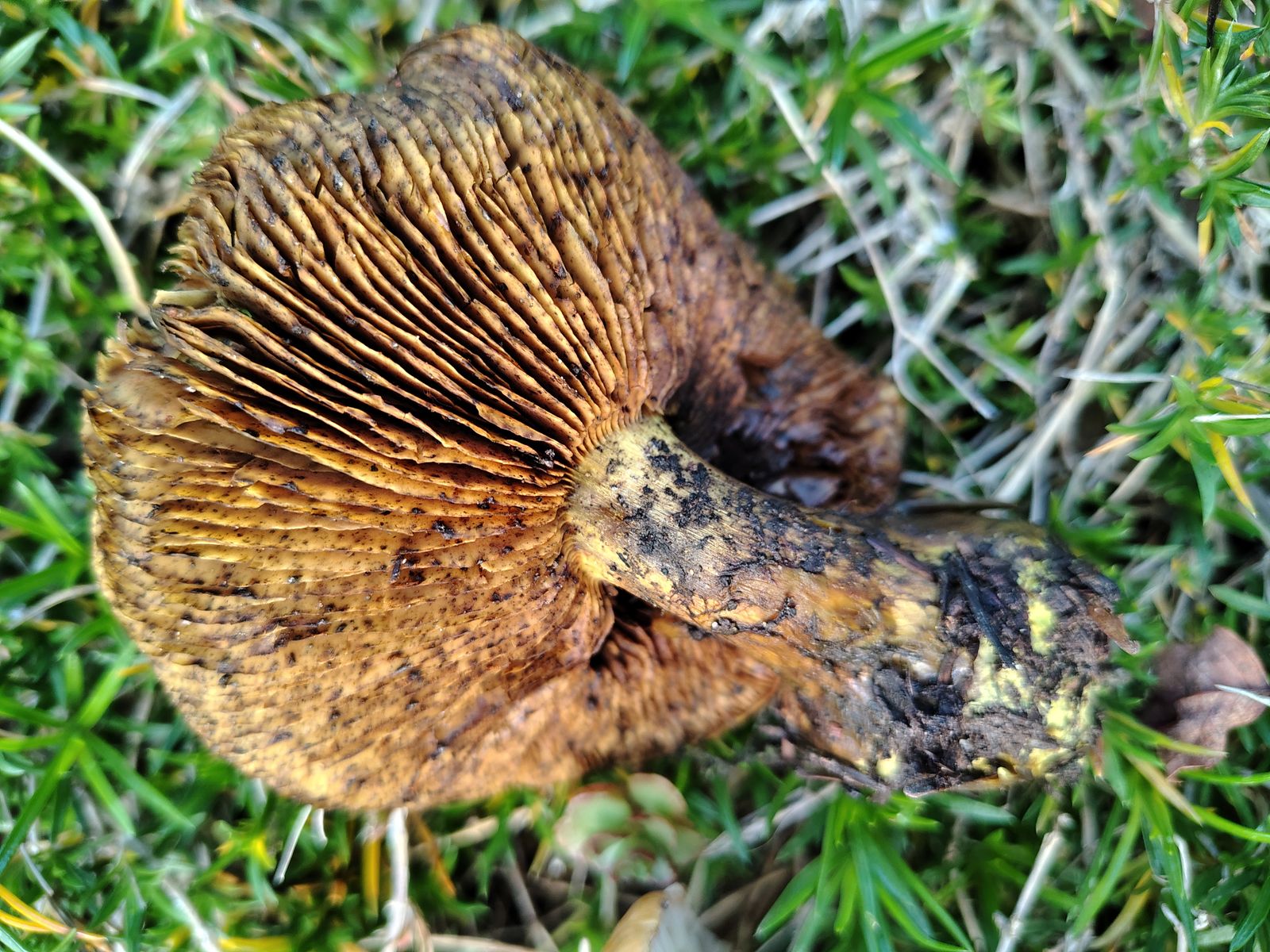 Und dann in uralt und gerade noch so bestimmbar ;(Da aber eine ziemliche Seltenheit kann man ihn trotzdem mal zeigen; Calonarius atrovirens, der schwarzgrüne Tannenklumpfuß
