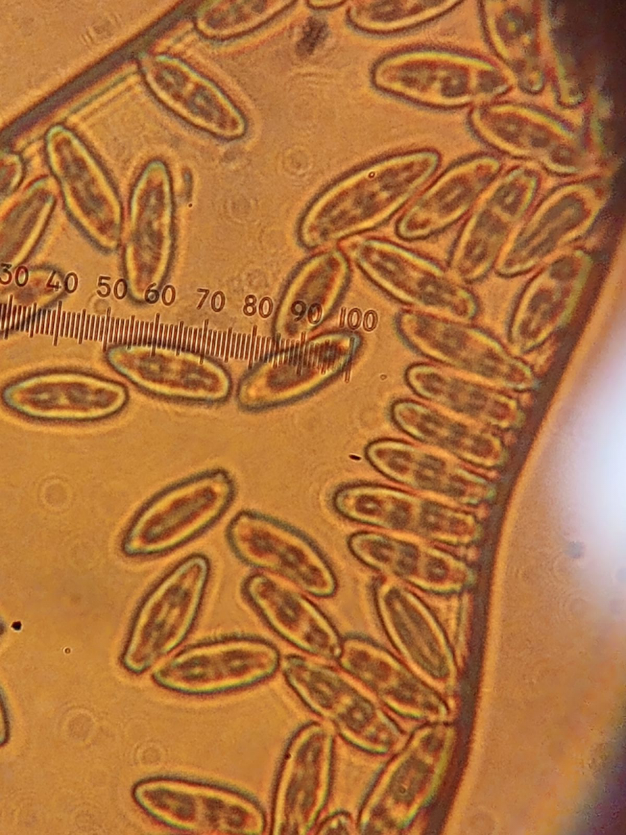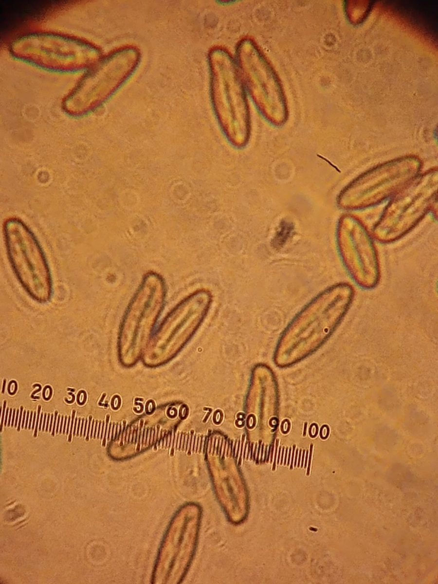 weil ich jetzt ein Mikroskop habe und endlich auch die benötigte Messvorrichtung, konnte ich heute deinen Auftrag erfüllen und die Sporen messen. Ich musste mich da zunächst reinwurschteln und hoffe, ich habe keinen Murks mit der Umrechnung der Einheiten gemacht. Gemessen habe ich einzelne, freiliegende Sporen. Die Länge bewegte sich zwischen 0,0125 und 0,016 mm. Im Durchschnitt (n=10) 0,014mm, die durchschnittliche Breite (0,004-0,005mm) bei 0,0045mm. Ich habe verstanden, dass es einer Sequenzierung bedürfte, um eine sichere Aussage machen zu können, trotzdem war es eine gute Übung.