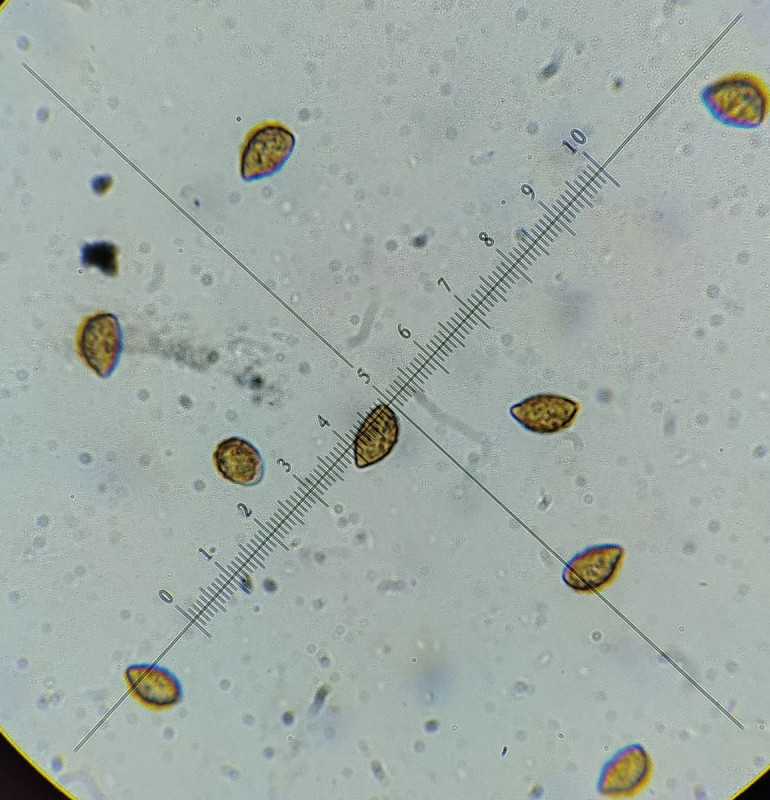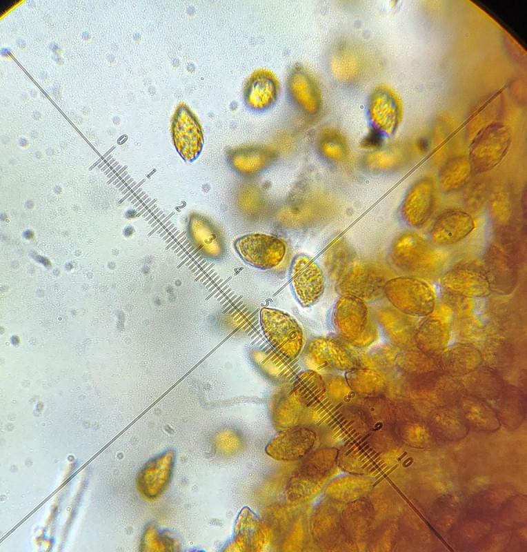 Könnte man glatt wieder an C. pseudoglaucopus denken richtig? Die Sporen sind allerdings zwar mandelförmig aber auch riesig; regelmäßig bis 14 um, Ausreißer sogar noch darüber.