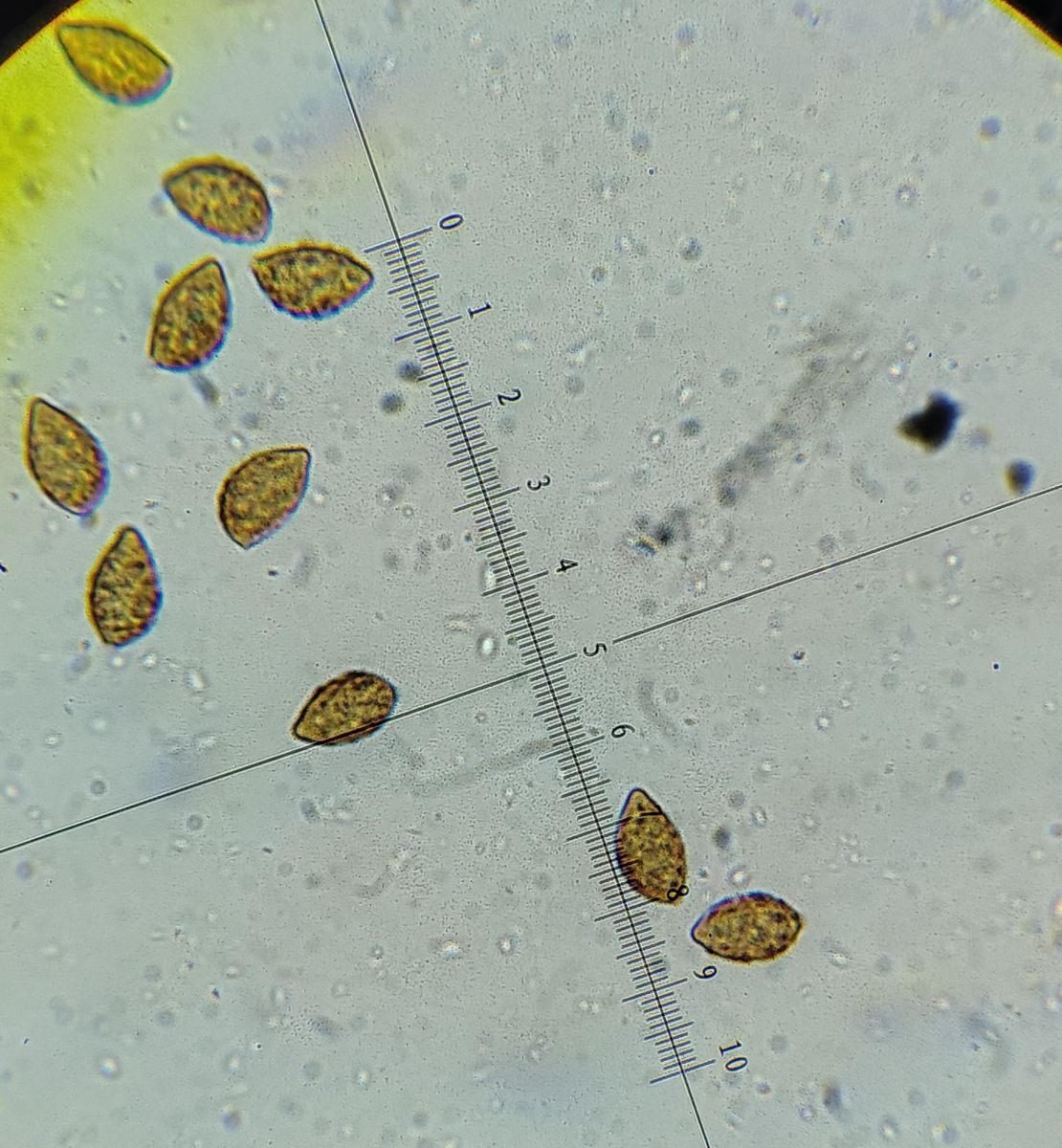 Könnte man glatt wieder an C. pseudoglaucopus denken richtig? Die Sporen sind allerdings zwar mandelförmig aber auch riesig; regelmäßig bis 14 um, Ausreißer sogar noch darüber.