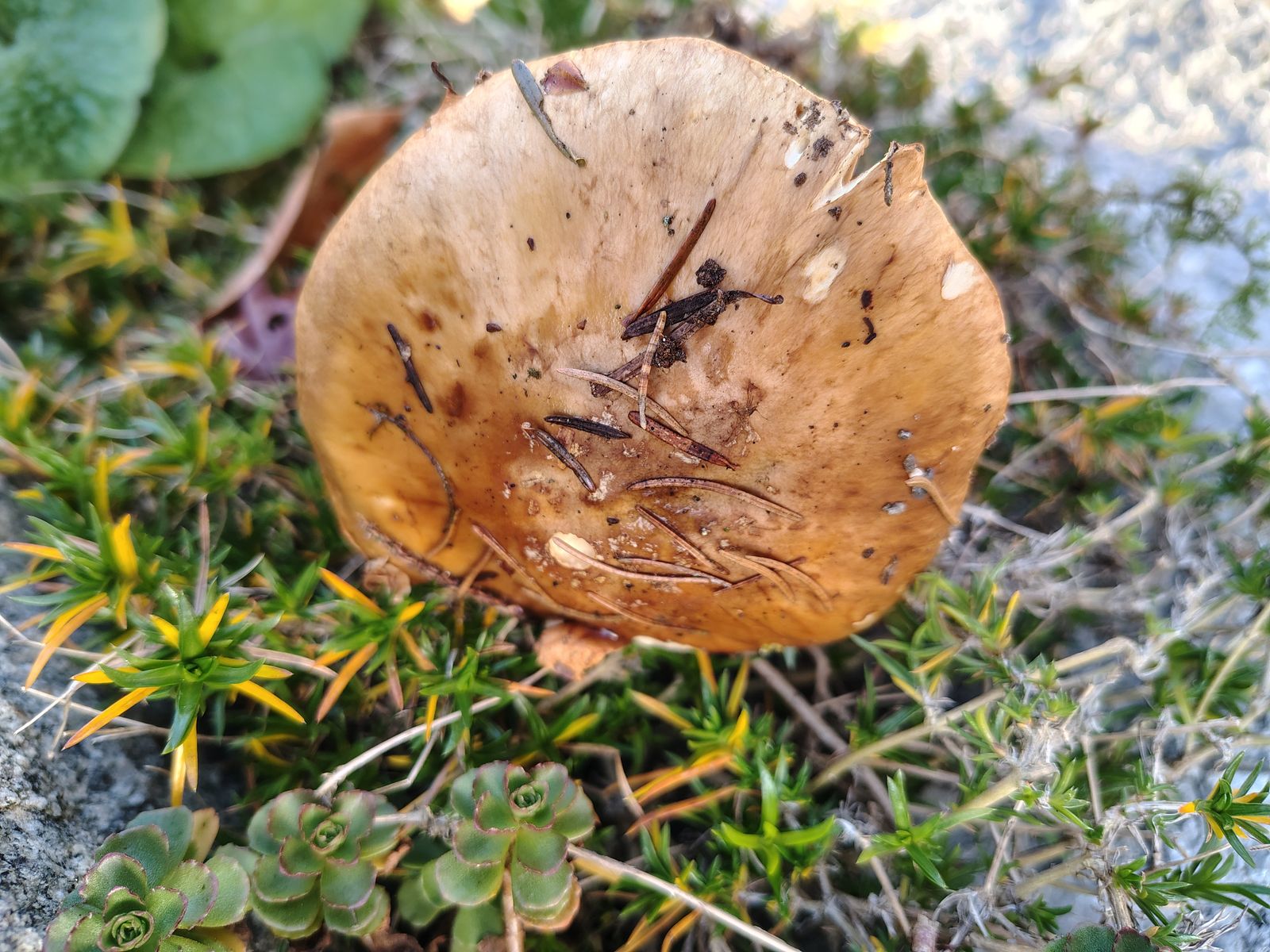 • Grüße in den Süden auf jeden Fall, und auch dort schöne Phlegmacienfunde. Die Knolle ist scharf gerandet, die Lamellen waren jung so beige/ockerbräunlich, die Farbe auf den Bildern ist recht farbecht. KOH überall negativ, am Hut recht hübsch orange aber das läuft noch unter negativ oder?