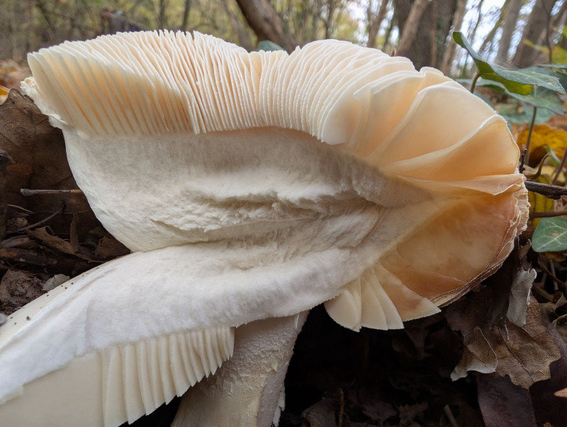 Gehe ich recht in der Annahme, dass es sich um Amanita ovoidea handelt? Ich habe den bisher noch nie gefunden. Die Fruchtkörper waren groß (habe aber nicht nachmessen können), der Geruch unbedeutend bis pilzig, ältere Lamellen gingen ins gelbliche, sonst wären sie cremefarben. Am auffälligsten waren die Velumreste am Hutrand und die Größe der Fruchtkörper. Der Ring war vergänglich, aber gerieft. Die Volva war übrigens auch weiß.