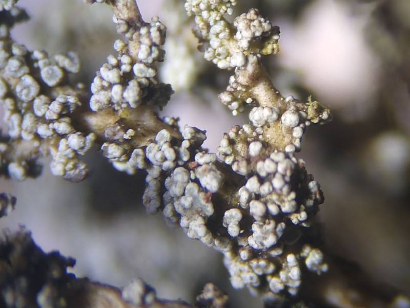 Bild B1 Körnige Phyllocladien im oberen Bereich der Äste. Sie sollen oft auch sorediös aufbrechen können.