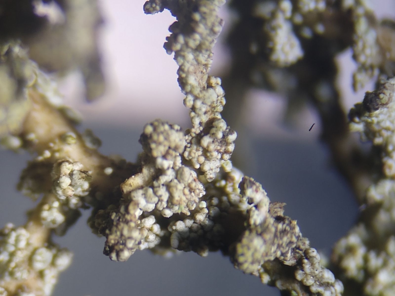 Bild B1 Körnige Phyllocladien im oberen Bereich der Äste. Sie sollen oft auch sorediös aufbrechen können.