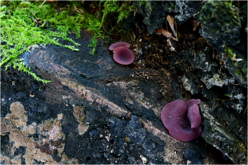 14 | hier bin ich unsicher - ich vermute den Violetten Erdbecherling, also den violacea - der wuchs auf einer schon sehr stark zersetzten und verwitterten Buche - vielleicht hat ja doch jemand eine konkretere Idee