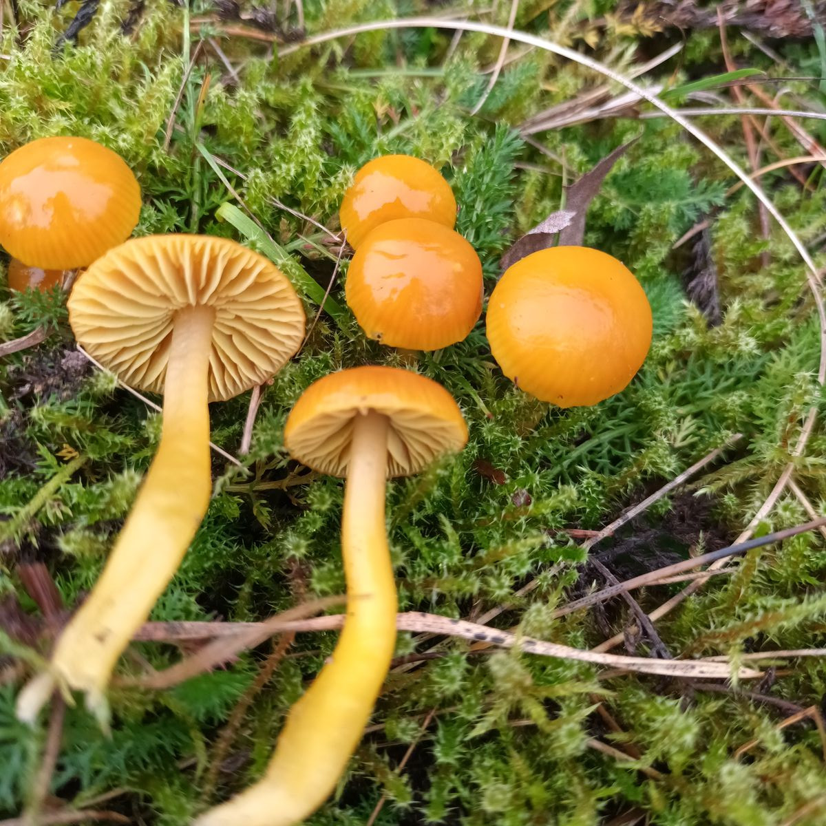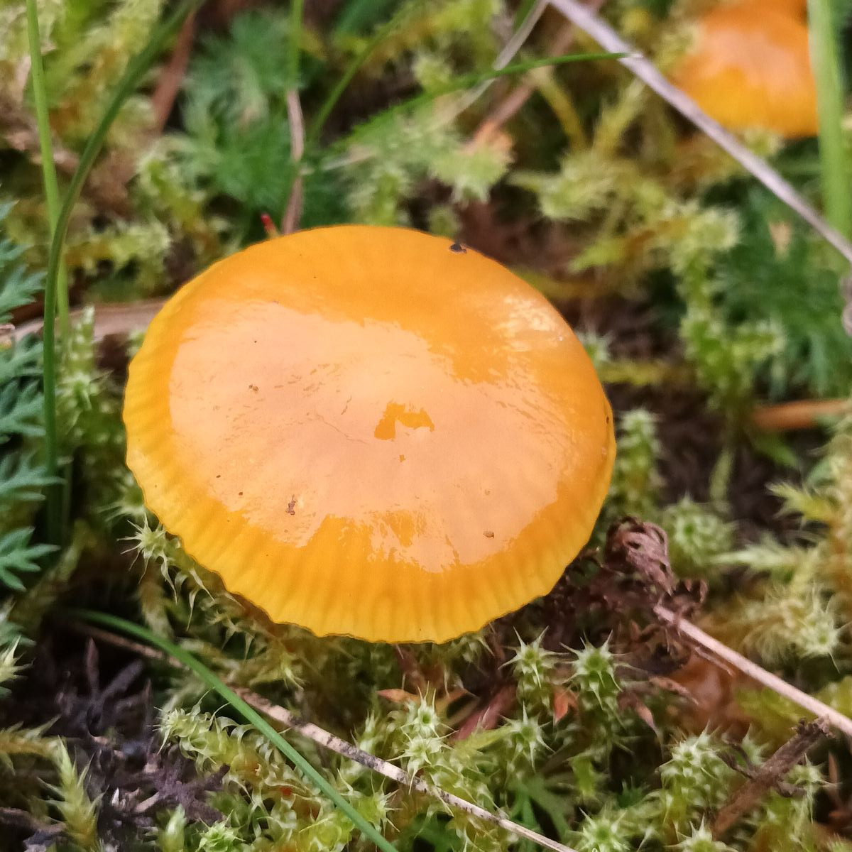 Der ganze Saftling schleimig von Hut bis Stielbasis. Es gestaltete sich als schwierig, einen zu entnehmen, damit ich die Lamellen zeigen kann. Geruch war nicht festzustellen.
