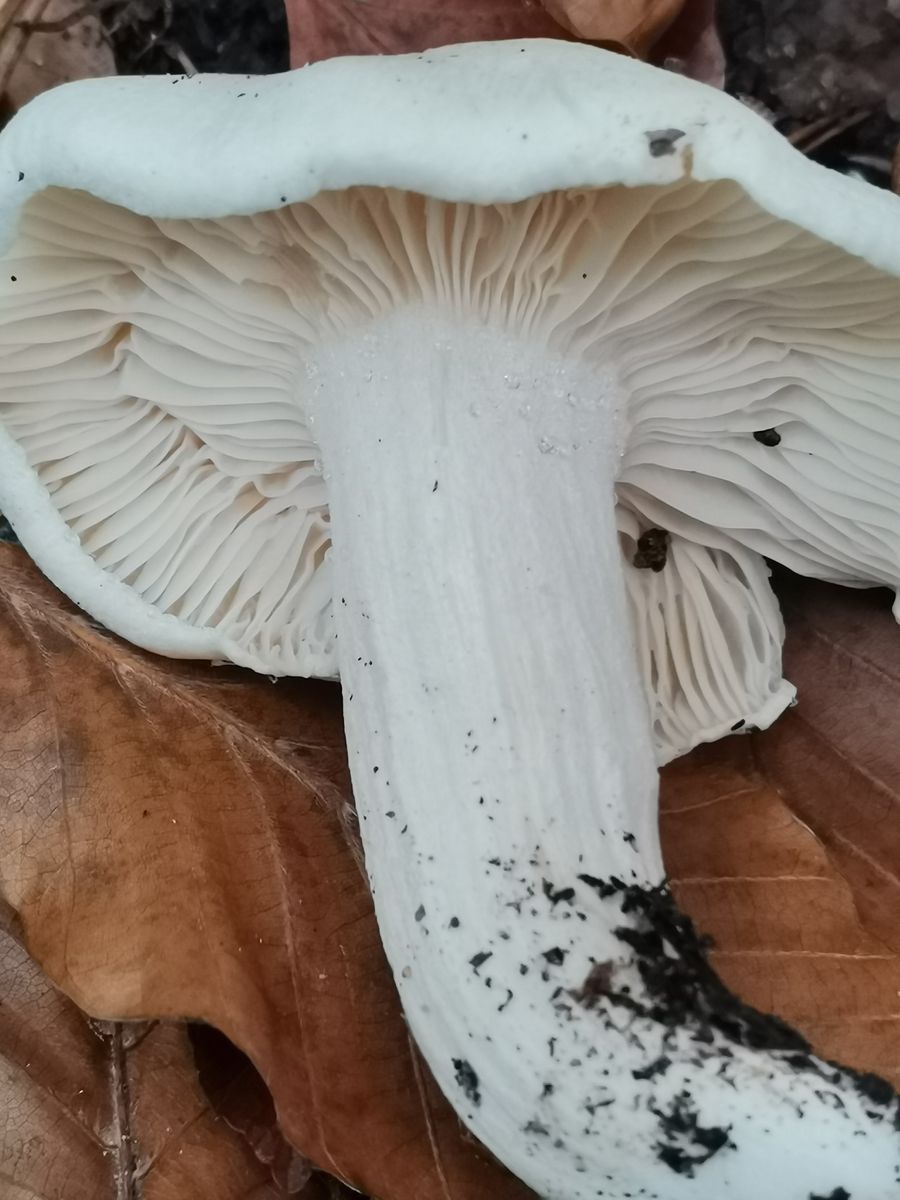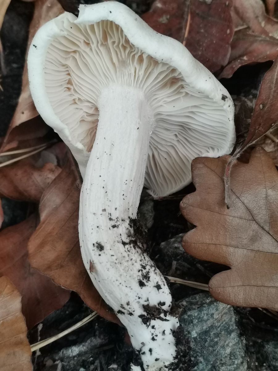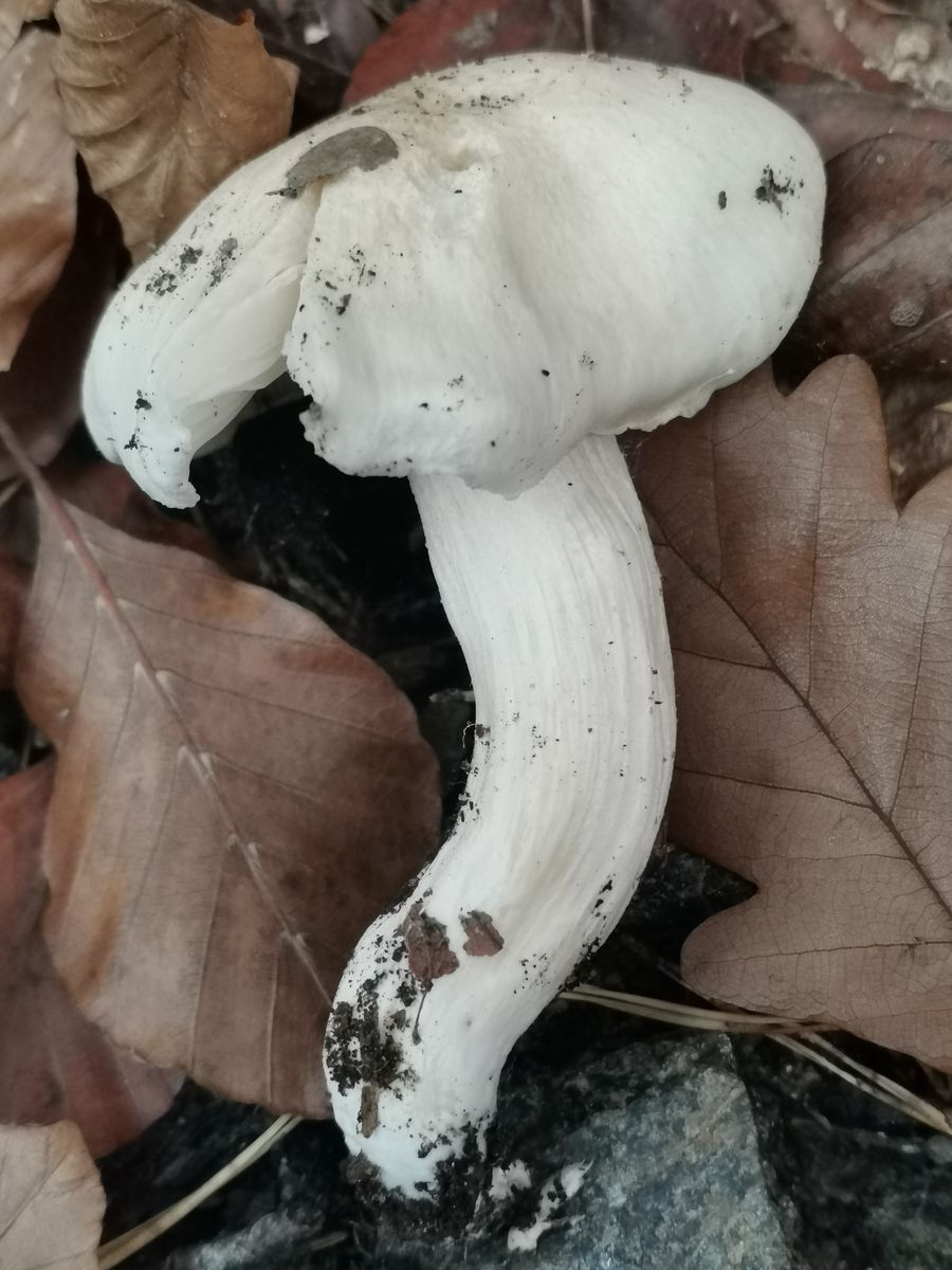 Diese beiden Exemplare habe ich direkt nebeneinander wachsend unter einer sehr alten Buche im Eichen-Buchen-Mischwald auf lehmigen Boden gefunden. Der pH-Wert dürfte eher im basischen Bereich liegen, durch Basalt geschotterten Waldweg in nur einem Meter Entfernung von den beiden Fruchtkörpern zusätzlich angehoben. Fundort bayrischer Untermain, Weinbauklima, 190 Meter über NN.