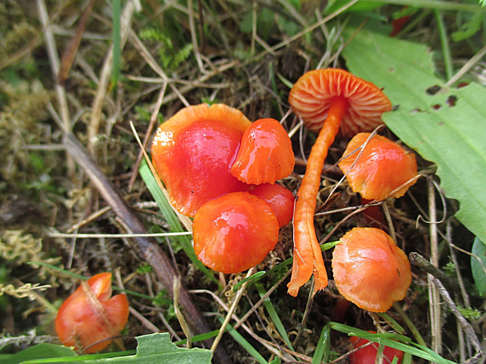 Bei der zweiten Gruppe haben wir Hygrocybe mucronella, den Bitteren Saftling vermutet aber die waren nur leicht bitter. Daher gibt es hier starke Zweifel an der Bestimmung. Ich kenne die nur extrem bitter.