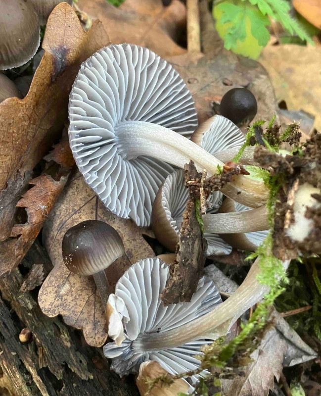- Lamellen: Lamellen satt grau, wirkt wie grau lackiert, vergleichsweise weit auseinanderstehend, mit Zahn herablaufend, Sporenpulver unbekannt