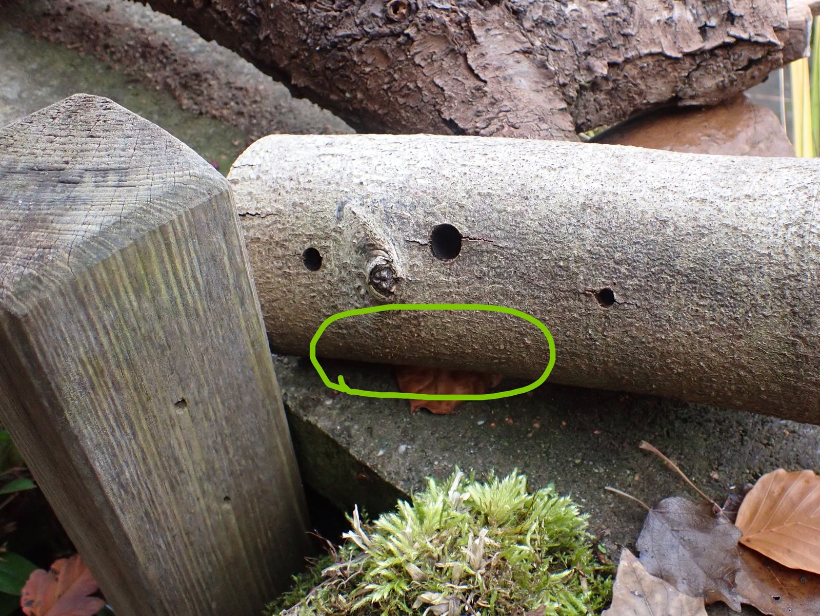 Bei uns im Garten auf der Mauer liegt schon eine Weile ein Ast, Holz weiß ich nicht mehr. :grotwerd: