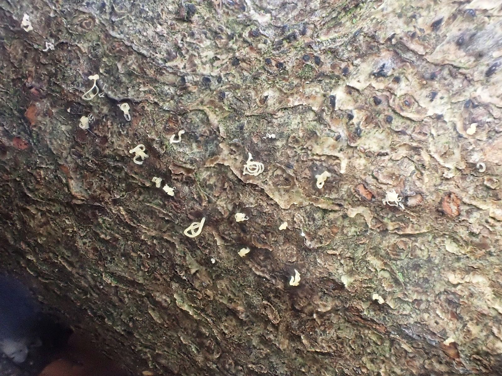 7 Heute ist der Ast nass, da erscheinen neue Flecken, nicht wurmförmig. Vielleicht sind die was anderes?