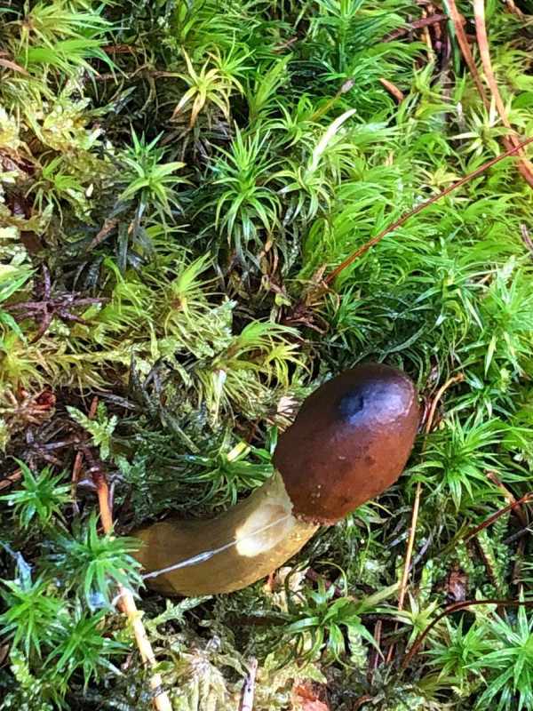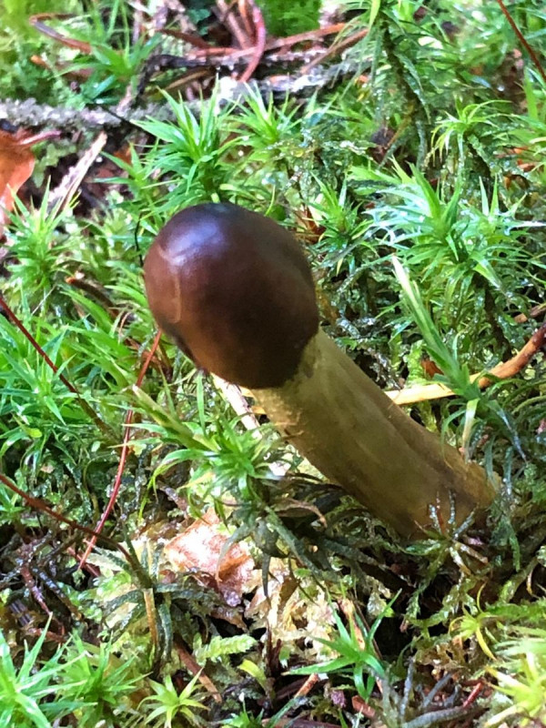 Gewachsen ist es zwischen Trompetenpfifferlingen im Moos, unter Fichten.