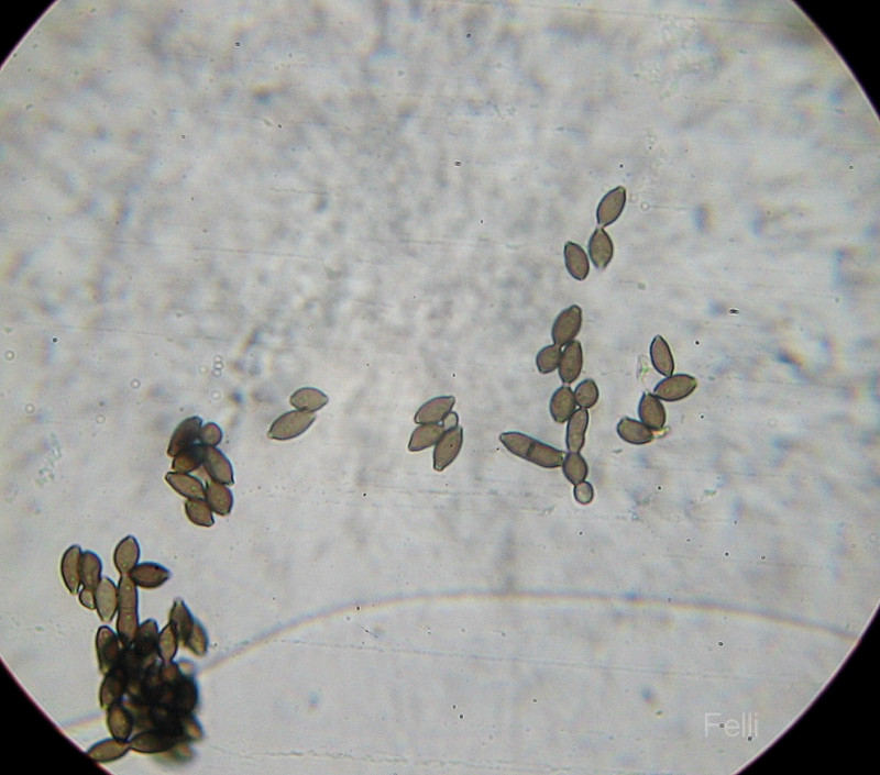 kleine ( 6-8 x4µ) vereinzelt septierte Konidien,