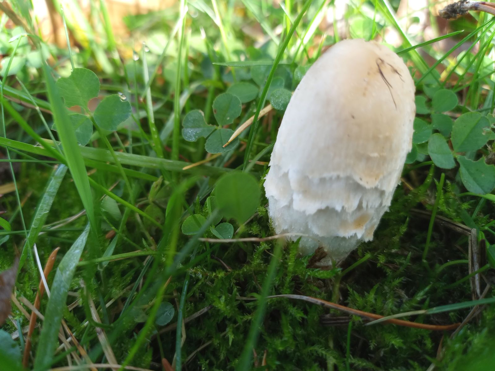 Zunächst schaute noch ein kleiner "Tintenschopfling" (wie letztens jemand sagte) (Coprinus comatus), aus dem Gras: