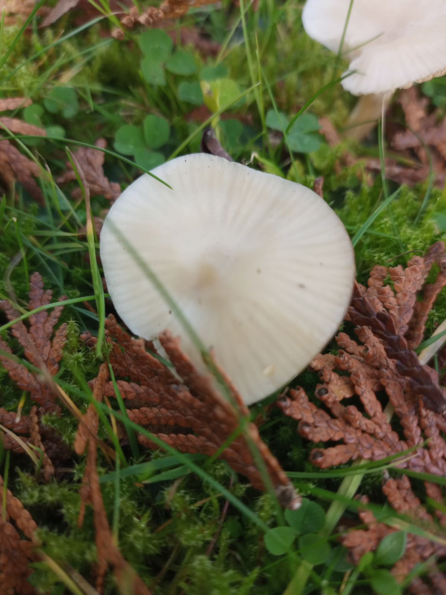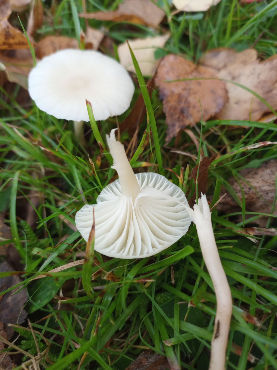 Kohorten von nahezu geruchlosen Jungfernellerlingen (Cuphophyllus virgineus), die mein Smartphone nicht richtig erfassen kann. Weiße Pilze sind für das Teil ein Graus:
