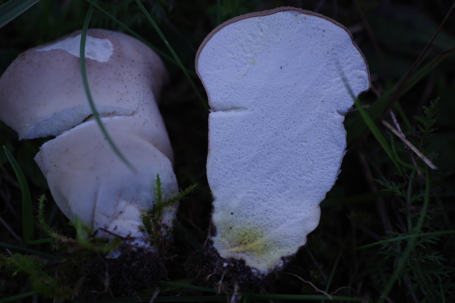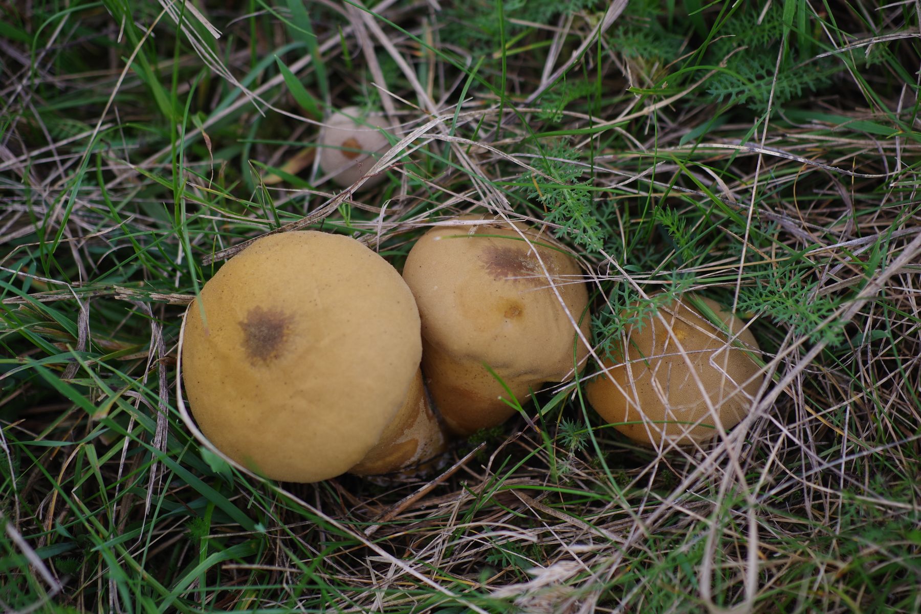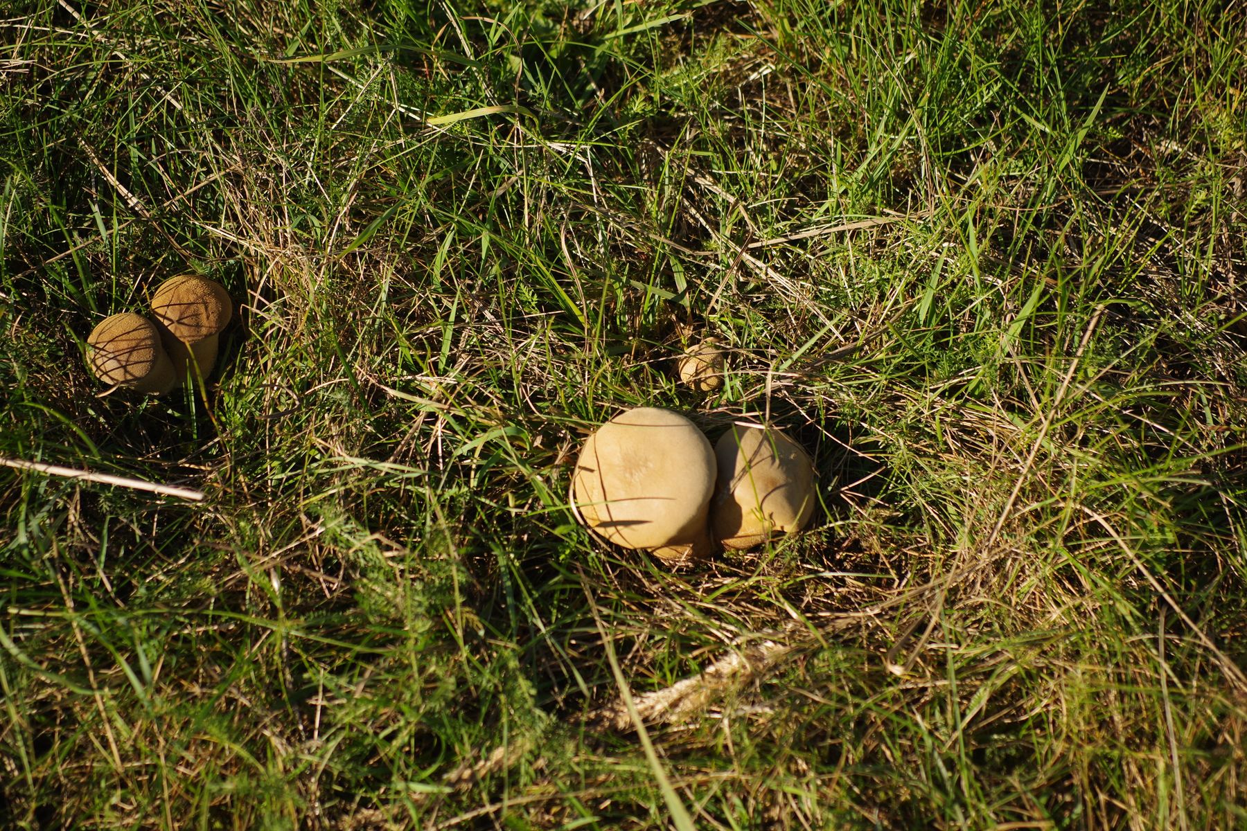 ich hab' einen nicht so arg häufigen Stäubling zu zeigen: Lycoperdon ericaeum Bonord. (1857), teils auch als Unterart in L. muscorum eingegliedert, bzw. jüngst auch in eine andere Gattung Leptocaulis ericaeus (Bonord.) R.L. Zhao & J.X. Li (2024) umkombiniert. Auf der Wiese, wo auch all das andere Zeug wächst. Komisch nur, dass es heißt, L. ericaeum solle auf saurem Boden wachsen, wohingegen weder die Pflanzenwelt, noch die anderen Pilze auf sauren Boden hinweisen. Eventuell eine Mikroanomalie, weil im Zuge der Trockenlegung, in der Wiese in den 80ern auch Rohre verbuddelt wurden und der Boden dann irgendwie wieder reingeschüttet wurde. Wobei aber die oberen Bodenschichten trotzdem alle kalkhaltig sind und Torf hat es hier noch nicht.