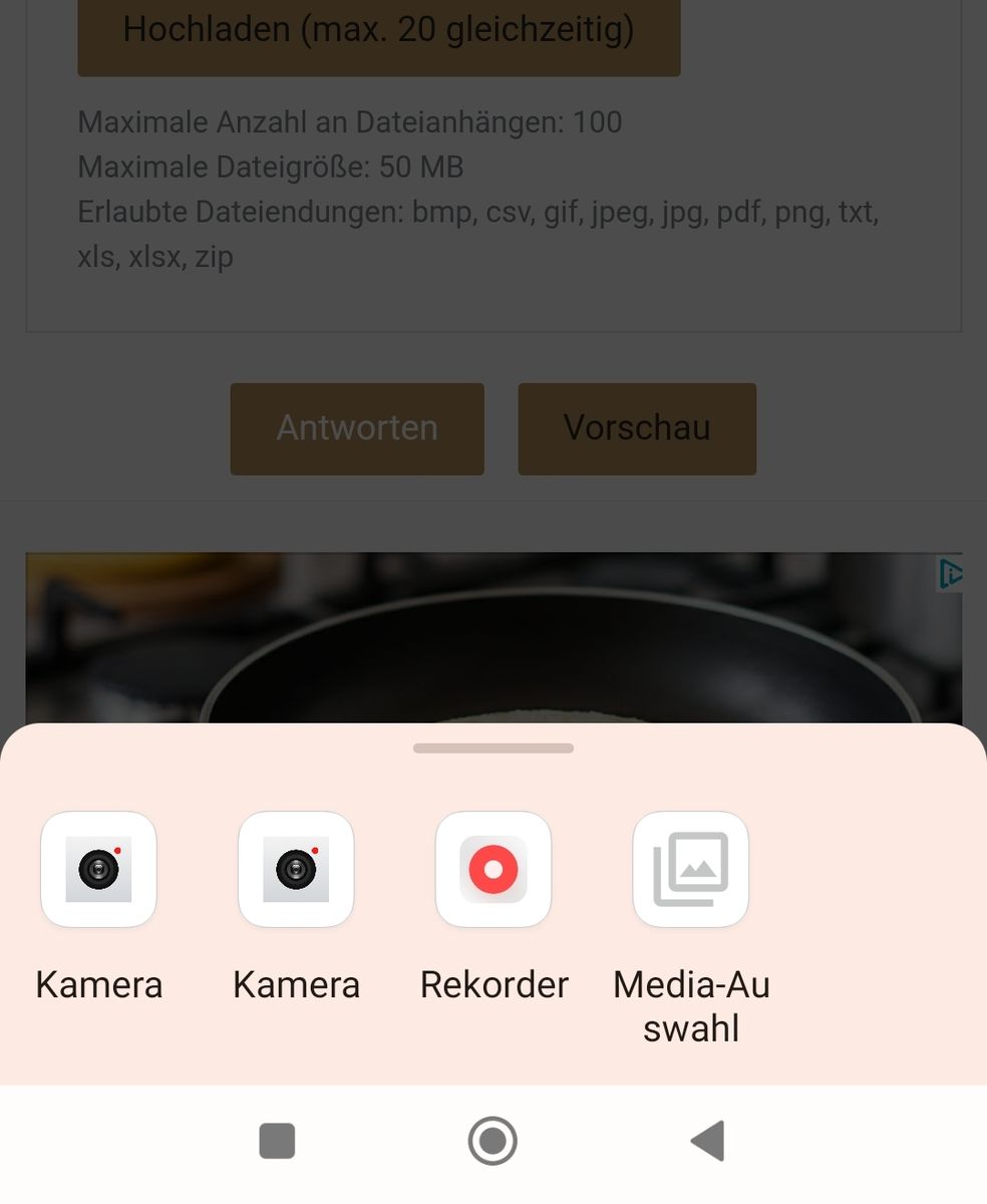3.: Dann erscheint irgendeine Auswahl, die dein Endgerät zur Verfügung stellt, wo du dann aus Fotos, Dateien etc. aussuchen kannst. Bei meinem Handy sieht's so aus: