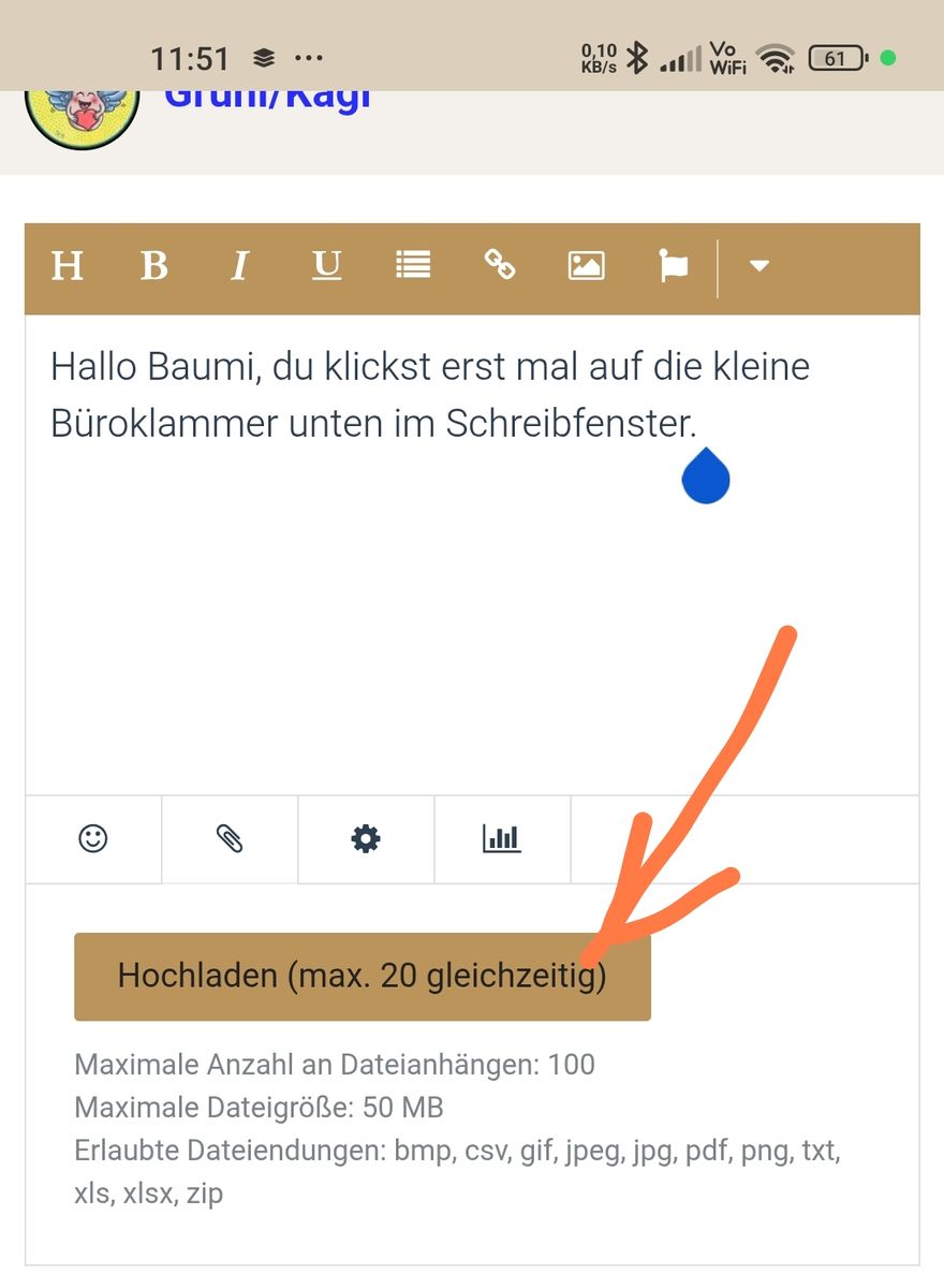 2.: Dann erscheint "Hochladen"; wieder draufklicken.