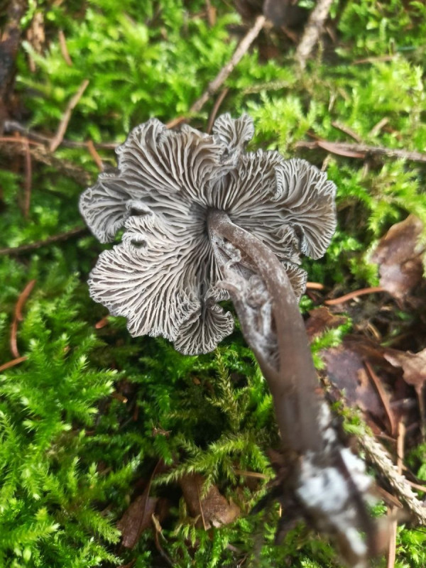 Ein sehr spannender Pilz, der von den Farben an den Grauen Pfifferling oder die Herbsttrompete erinnert.