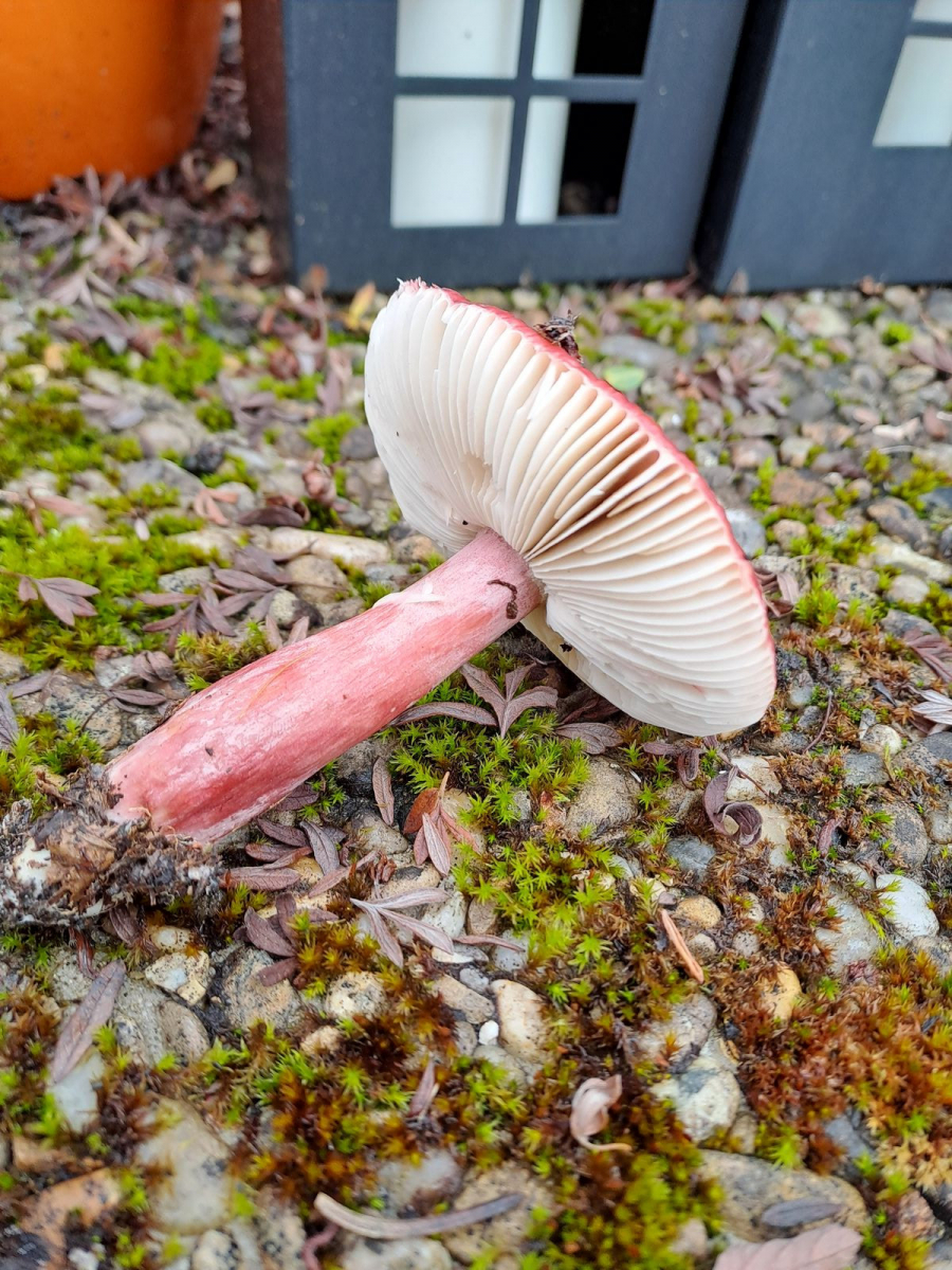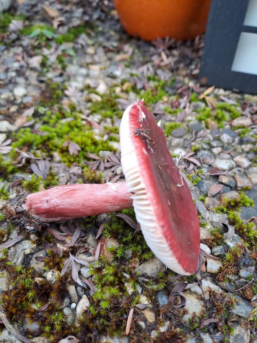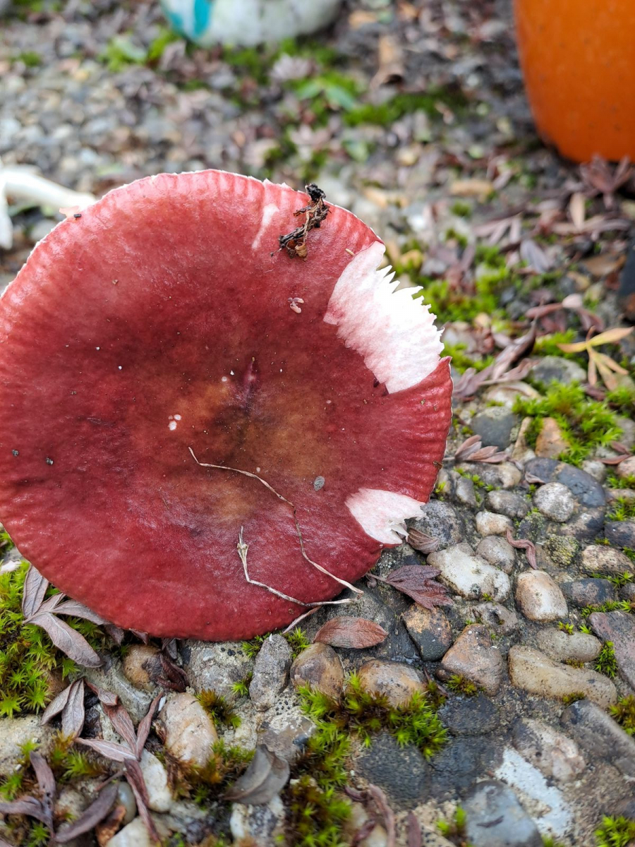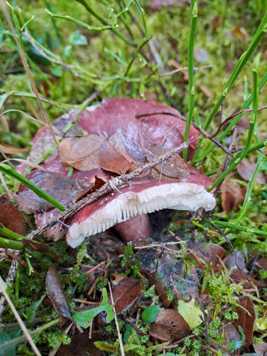 Ich bin beim Dunkelroten Stachelbeer-Täubling, Russula fuscorubroides.