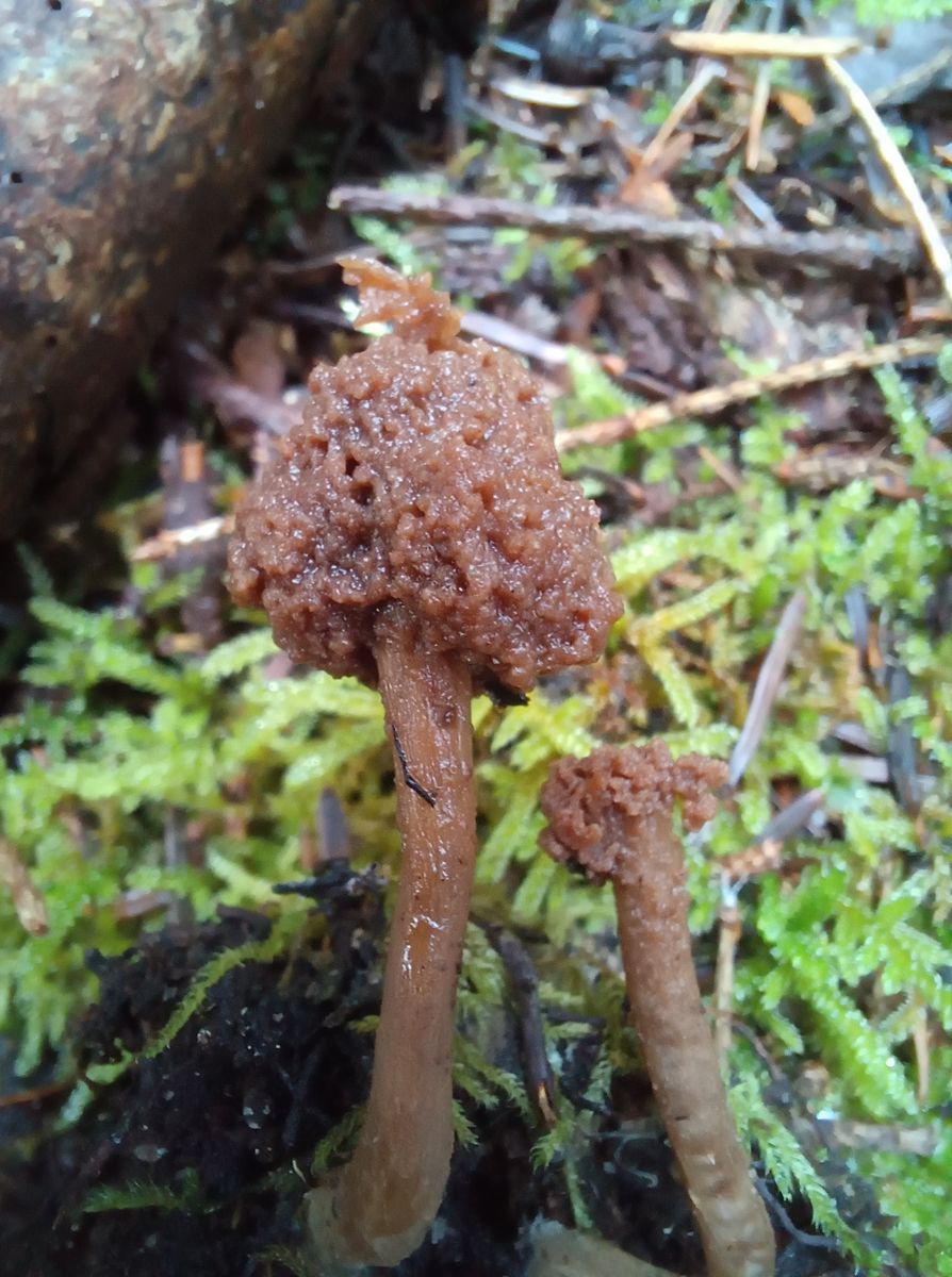 1. Das Gebilde ist etwa 5cm hoch, davon der Kopf 2cm. Sto. ist ein saurer Fichtenwald auf Moos, wahrscheinlich Holzreste. Kein besonderer Geruch. Ist das überhaupt ein Pilz? Meine Vermutung geht Richtung extremer Mutation/Missbildung von Cantharellus tubaeformis, da diese massenhaft in der Nachbarschaft waren. Andere Ideen?