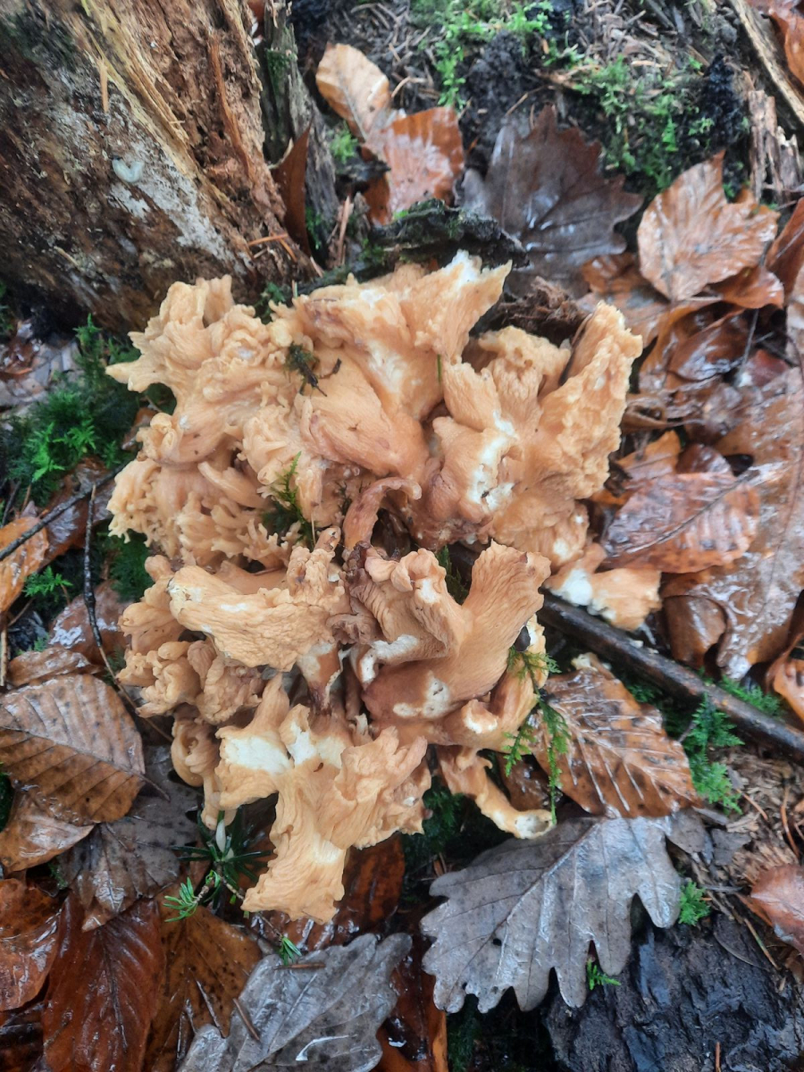 1) Erst dachte ich Schweinsohr, das ist aber schon sehr groß, ich sehe keine Lilatöne. Über den Geruch kann ich nichts sagen da das Ding schon älter war. Man sieht auch gut dass es sehr madenzerfressen ist. Zu erkennen sind auch, was ich als Leisten bezeichnen würde, weswegen auch die Vermutung Schweinsohr erst nahe lag.