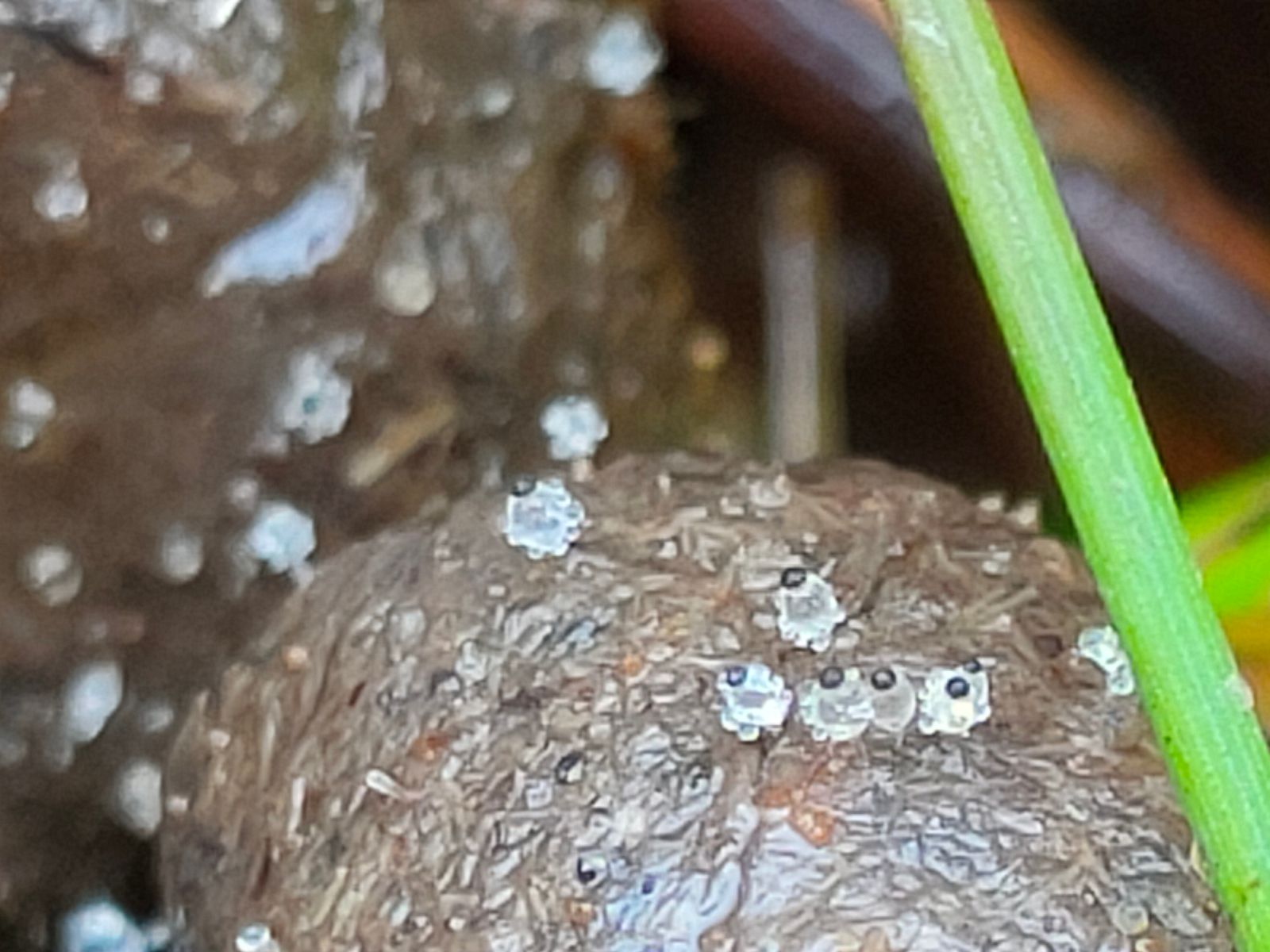 Gattung Pilobolus mit 6 möglichen Arten. Die Pillenwerfen sind ca 1-2 mm Groß. Da geht die Reise ohne Mikroskop nicht weiter.