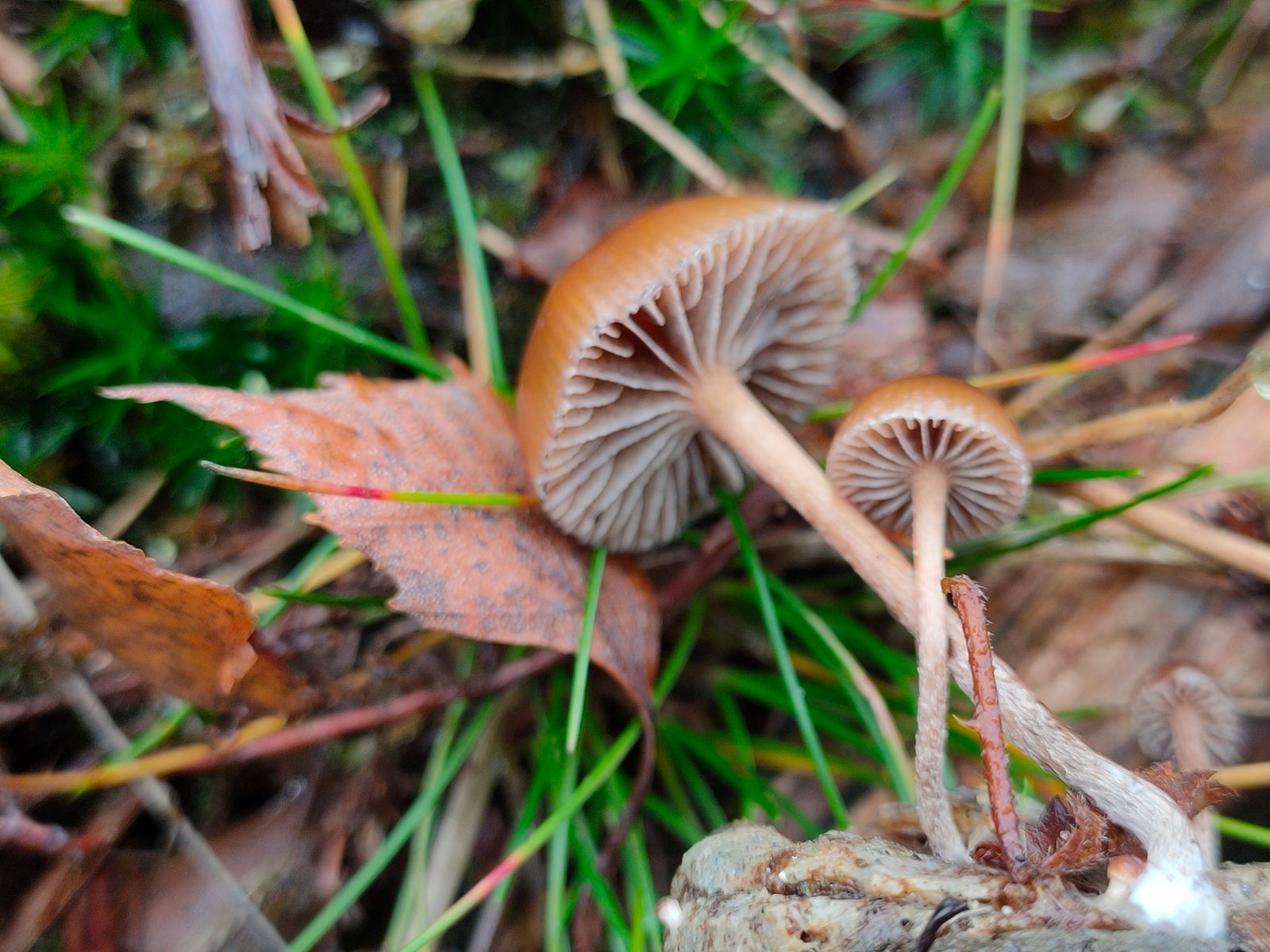 2. Deconica coprophila: Noch ein Dungpilz auf Wildschwein? In der Sauerwiese ein recht häufig zu findender Kahlkopf. Die Hutfärbung, Velumrest am Hut, der flockige Stiel.