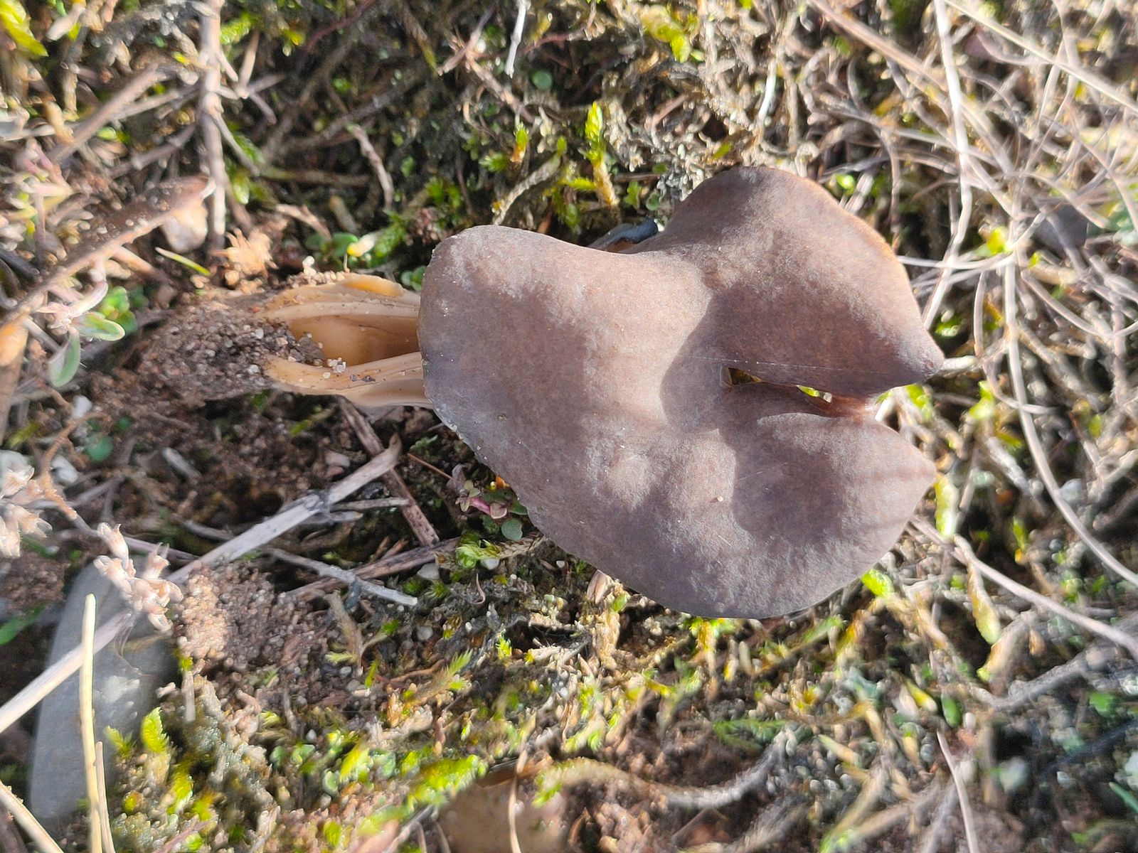 4. Gyromitra Helvella sp.: Diese sehr schöne braune Lorchel mit einem gefruchtem/gekammerten Stiel habe ich auf der kalkgeschotterten Weide neben einem Stück Holz gefunden.