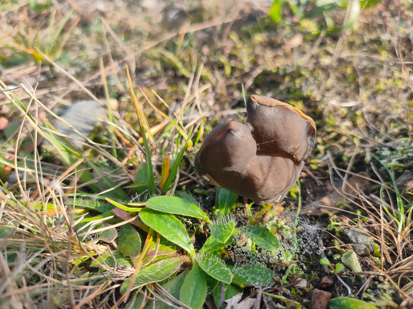 4. Gyromitra Helvella sp.: Diese sehr schöne braune Lorchel mit einem gefruchtem/gekammerten Stiel habe ich auf der kalkgeschotterten Weide neben einem Stück Holz gefunden.