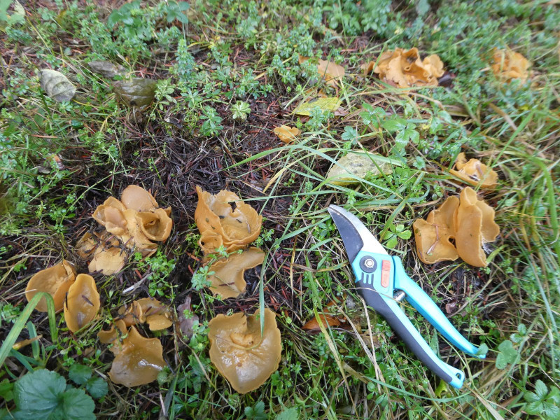 • Da die vermeintlichen Becherlinge/Öhrlinge sogar 9-10cm im Durchmesser haben,könnte es wegen der Größe auch Peziza varia sein?