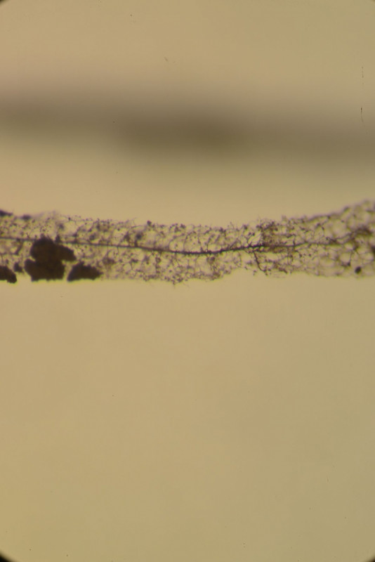 Comatricha irregularis scheint nicht gänzlich abwegig (sporangia long-cylindrical, dark brown to black, 2-8mm, spores verrucose, aber ich hab noch keine Ahnung vom Capillitium und wie ich da gut rankomme (oder ist es das, was da schon auf den Bildern zu sehen ist?)