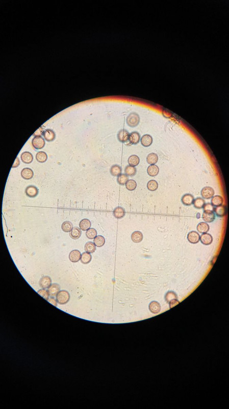 Zur Netzigkeit: Größer geht leider nicht. Das sind alles schon am Mikroskop 1000x und dem Handyzoom trau ich wirklich nicht zu, das in vergrößert besser hinzukriegen. Aber beim Mikroskopieren kann ich nicht nachvollziehen, dass das netzig sein soll. Ich bleibe bei feinwarzig (oder hab schlechte Augen). An einigen Stellen scheint es eher bei sehr starkem Kontrast, dass sich dann die Innenwände der Sporenwände ringförmig zuziehen und damit vielleicht an einzelnen Stellen den Anschein von zusammenhängenden Warzen erzeugen (oder andere Artefakte beim Fotographieren)? Oder ich kriegs halt nicht hin, ist auch nicht das allerallerbeste Mikroskop, abaer es reicht halt und ist so viel besser als keins. :)