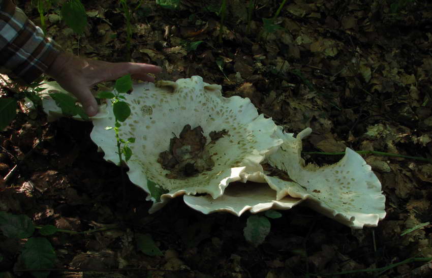 Diese riesigen Pilze habe ich gestern im Mechower Holz in Nordwest-Mecklenburg in einem teilweise feuchten Laubmischwald gefunden.