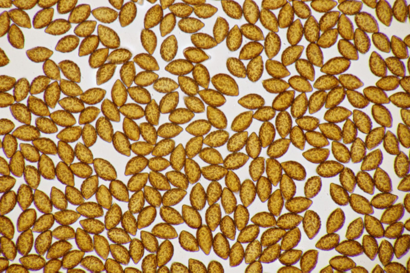22. Cortinarius elegantissimus mit Sporenmaßen 14,9±0,7 µm × 8,8±0,4 µm, Q=1,7±0,1; 13,7-16,4 µm × 7,8-9,8 µm, Q=1,5-1,9