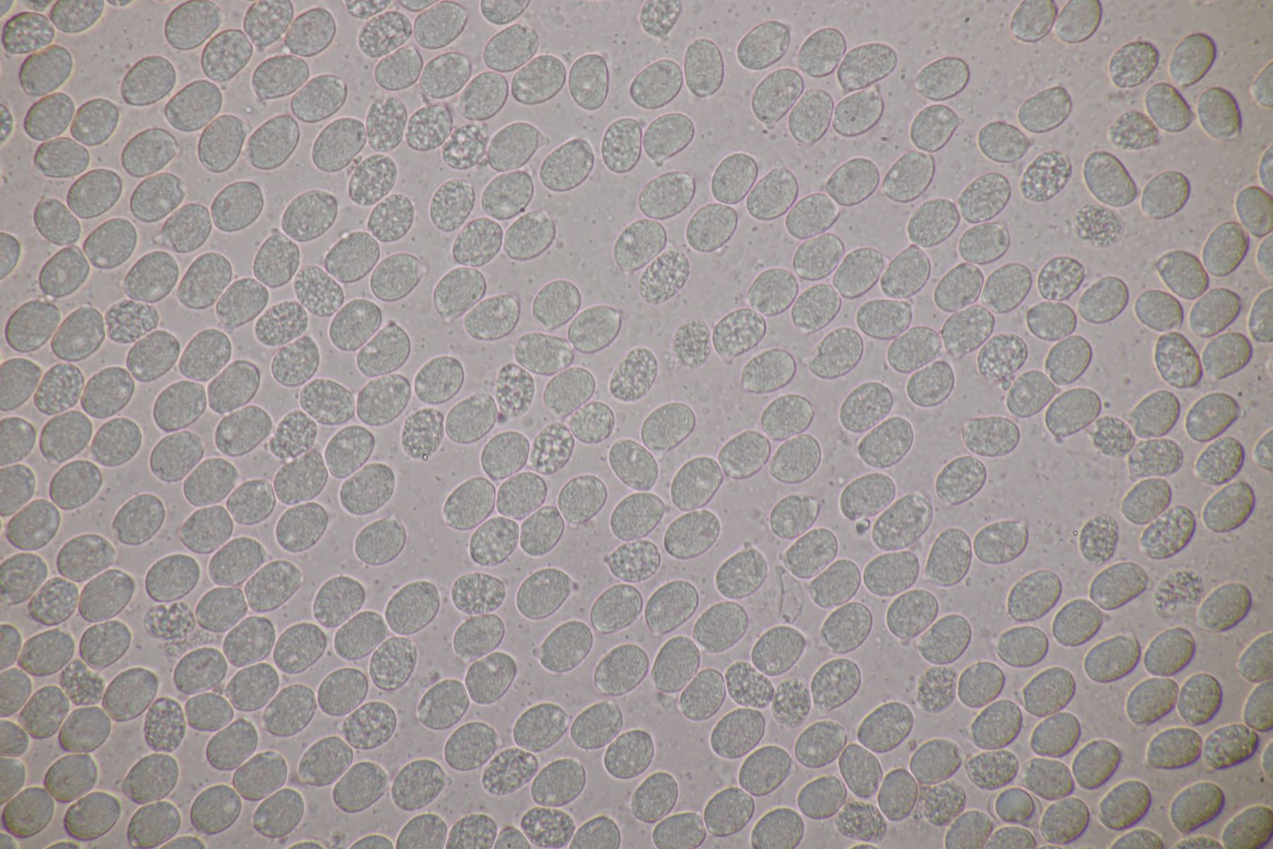 22. Cortinarius elegantissimus mit Sporenmaßen 14,9±0,7 µm × 8,8±0,4 µm, Q=1,7±0,1; 13,7-16,4 µm × 7,8-9,8 µm, Q=1,5-1,9
