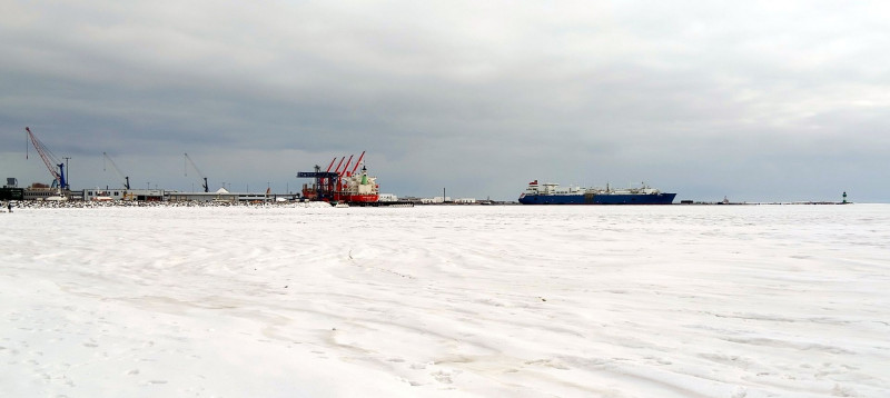 Da haben wir uns das Dilemma mit dem LNG angeschaut. Es kann kein LNG angelandet werden. Zu viel Eis und der Eisbrecher, der extra für den Hafen Mukran von der Nordsee geholt wurde, ist defekt. Hat aber auch einen Vorteil, die Neptune, die kein Landstrom hat, brummt nicht. Dadurch war es ein herrlich ruhiger Spaziergang.