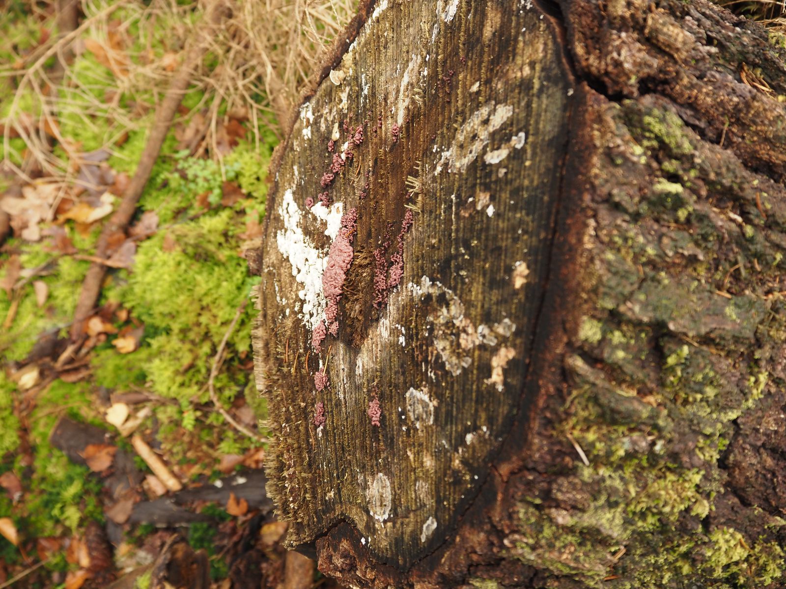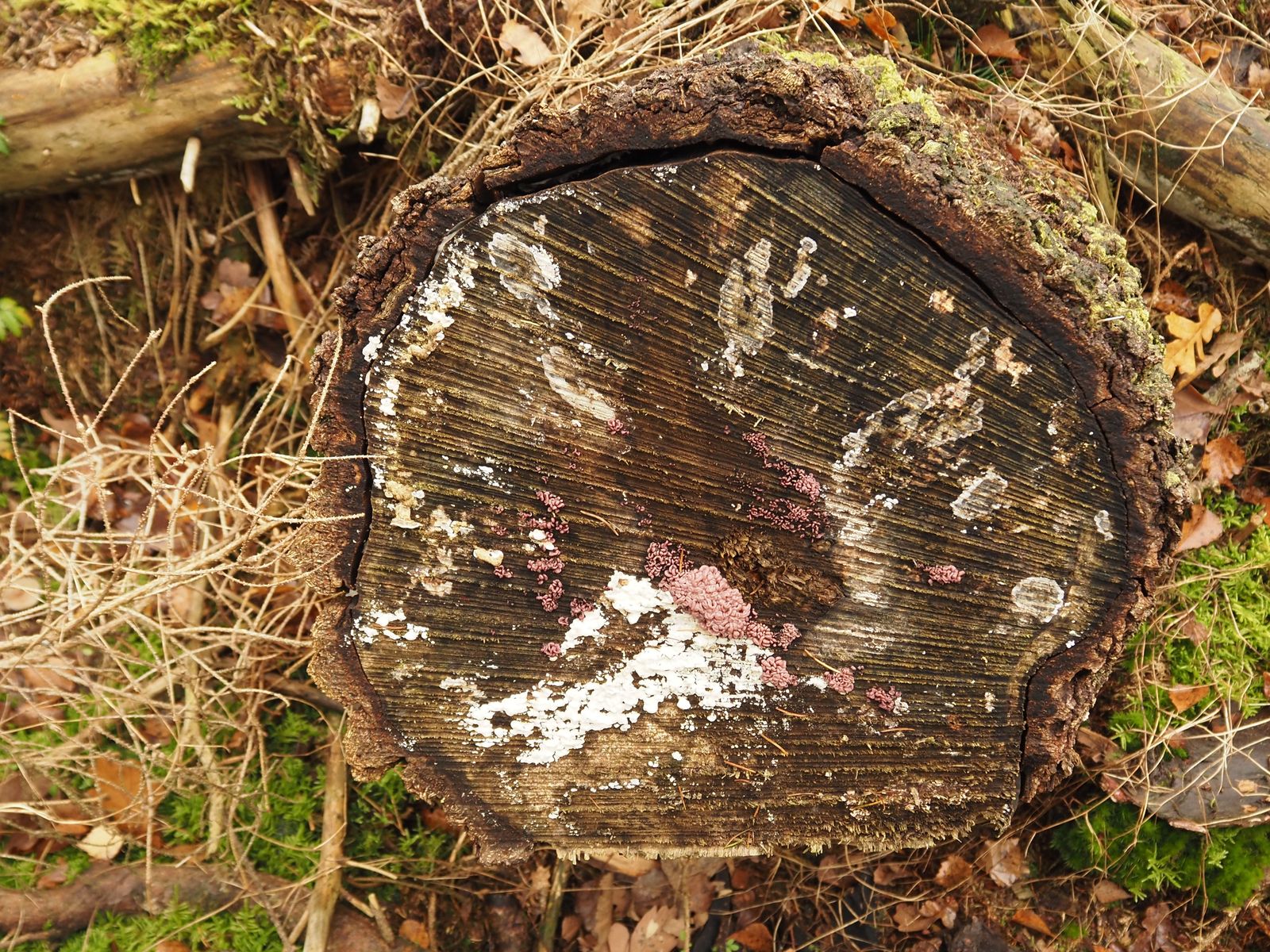 Dieser zu den Schlauchpilzen gehörende Pilz befand sich an etlichen Stellen auf Stubben-Schnittflächen von gefällten Bäumen, insbesondere Fichten aber auch Eichen.