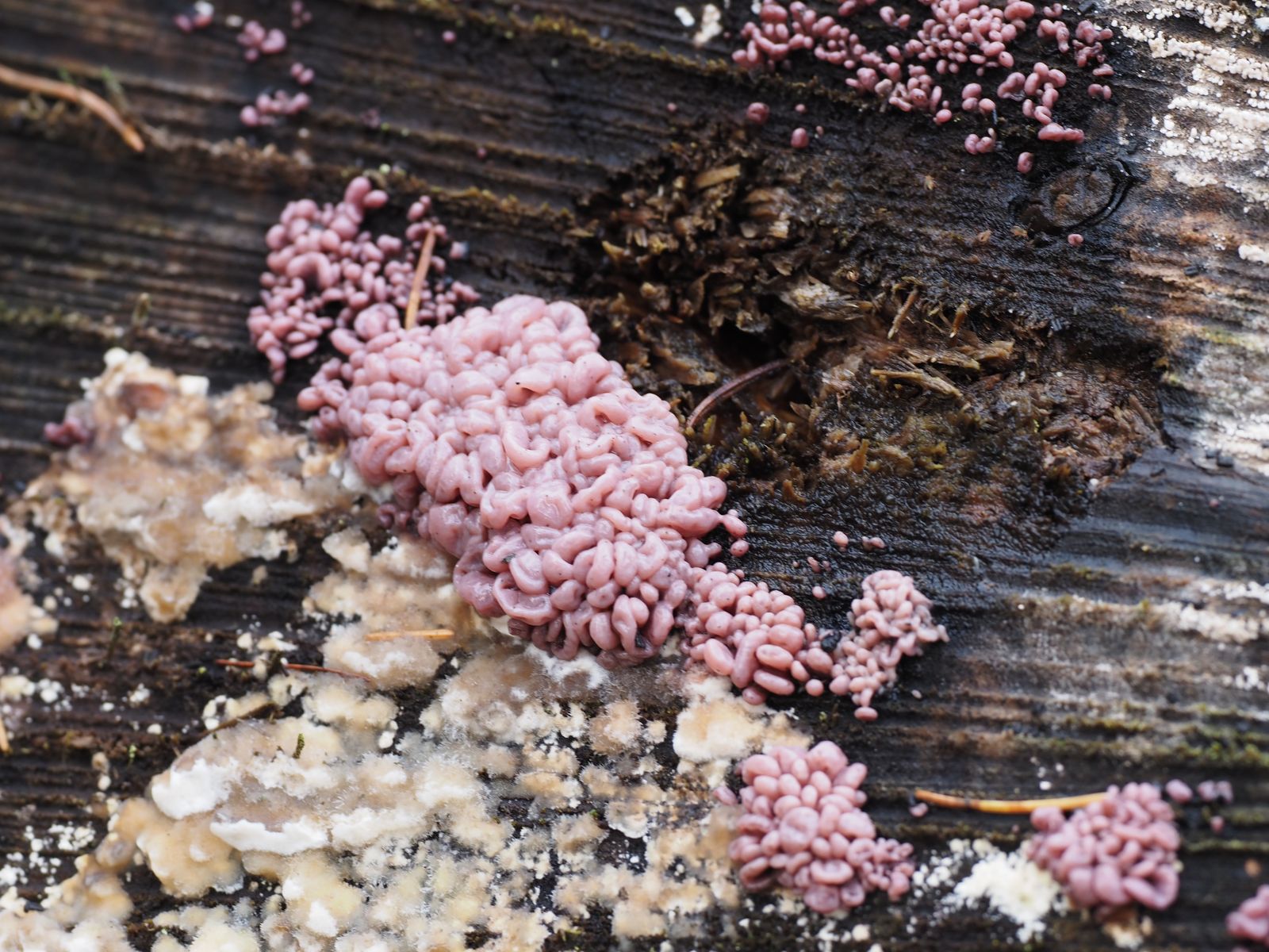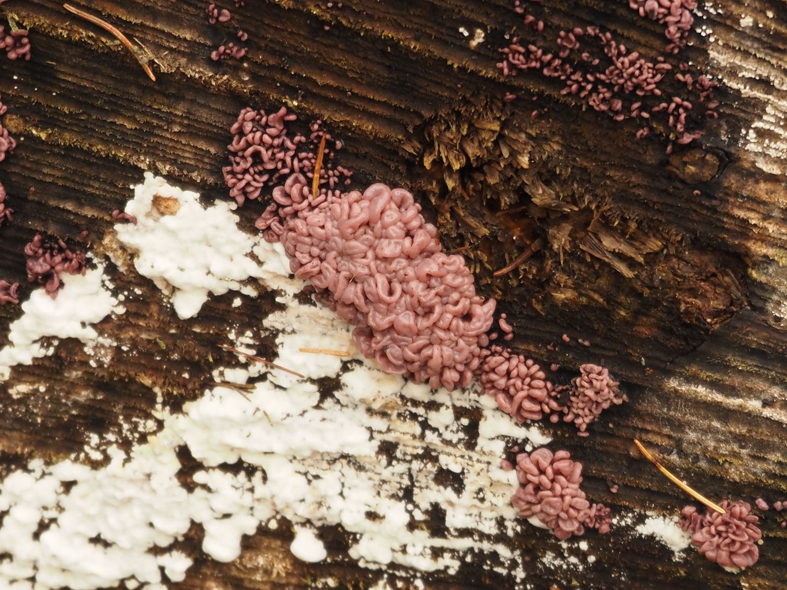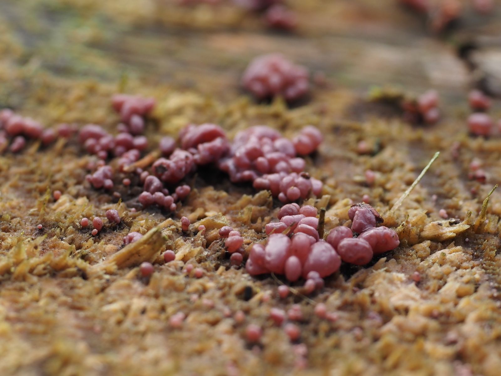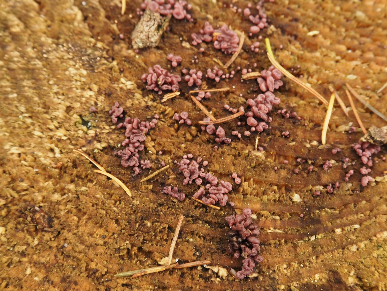 bei mir im Revier habe ich kürzlich auf Laub- und Nadelholz den Fleischroten Gallertbecher Ascocoryne sarcoides gefunden.