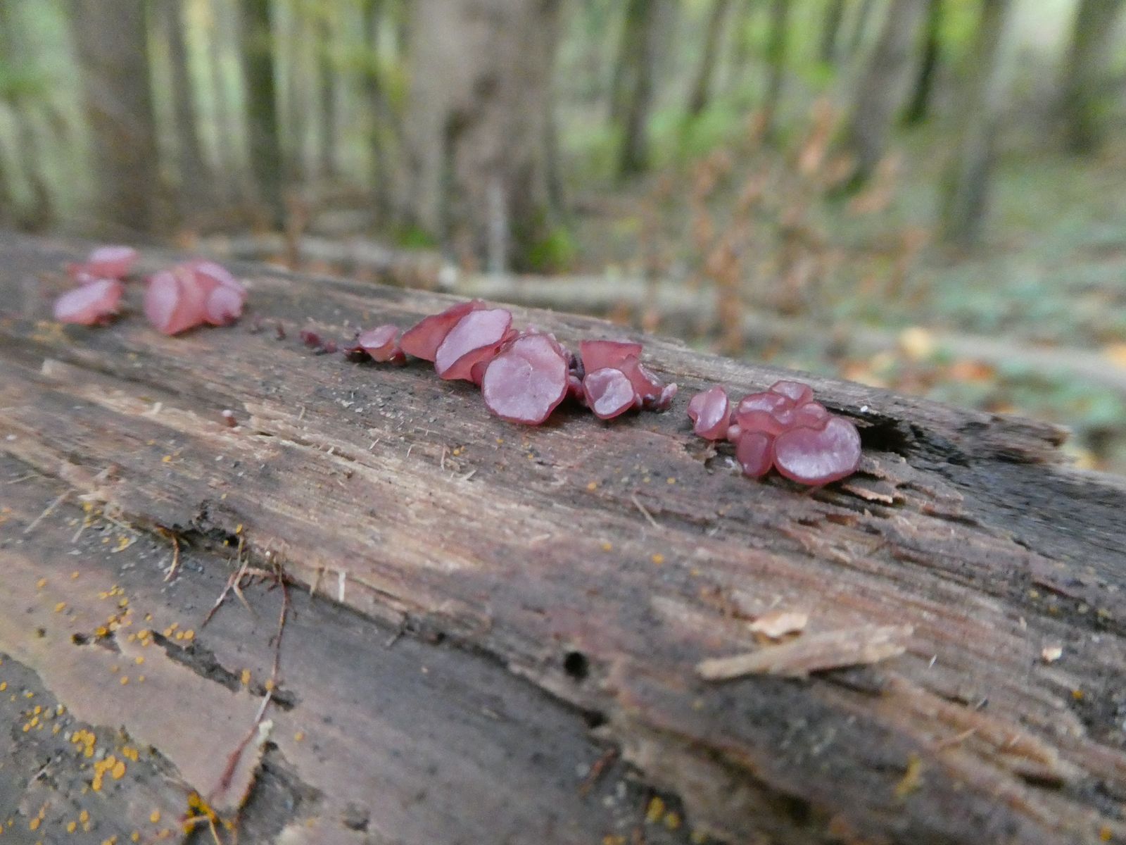 bei mir im Revier habe ich kürzlich auf Laub- und Nadelholz den Fleischroten Gallertbecher Ascocoryne sarcoides gefunden.